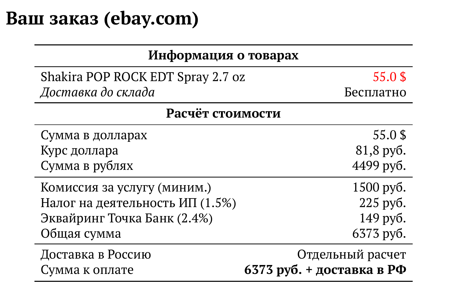 Расчет для ebay.com — 6373 руб.