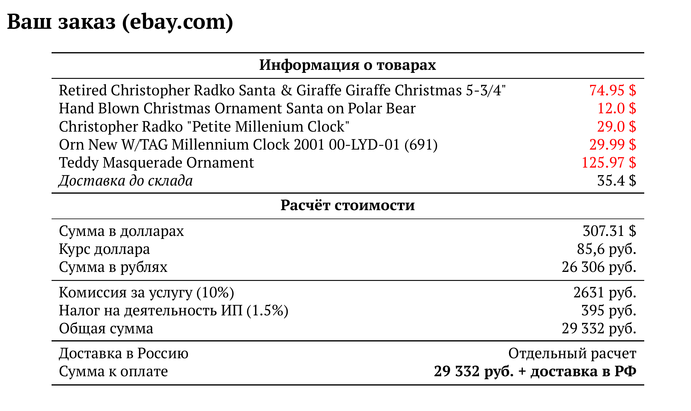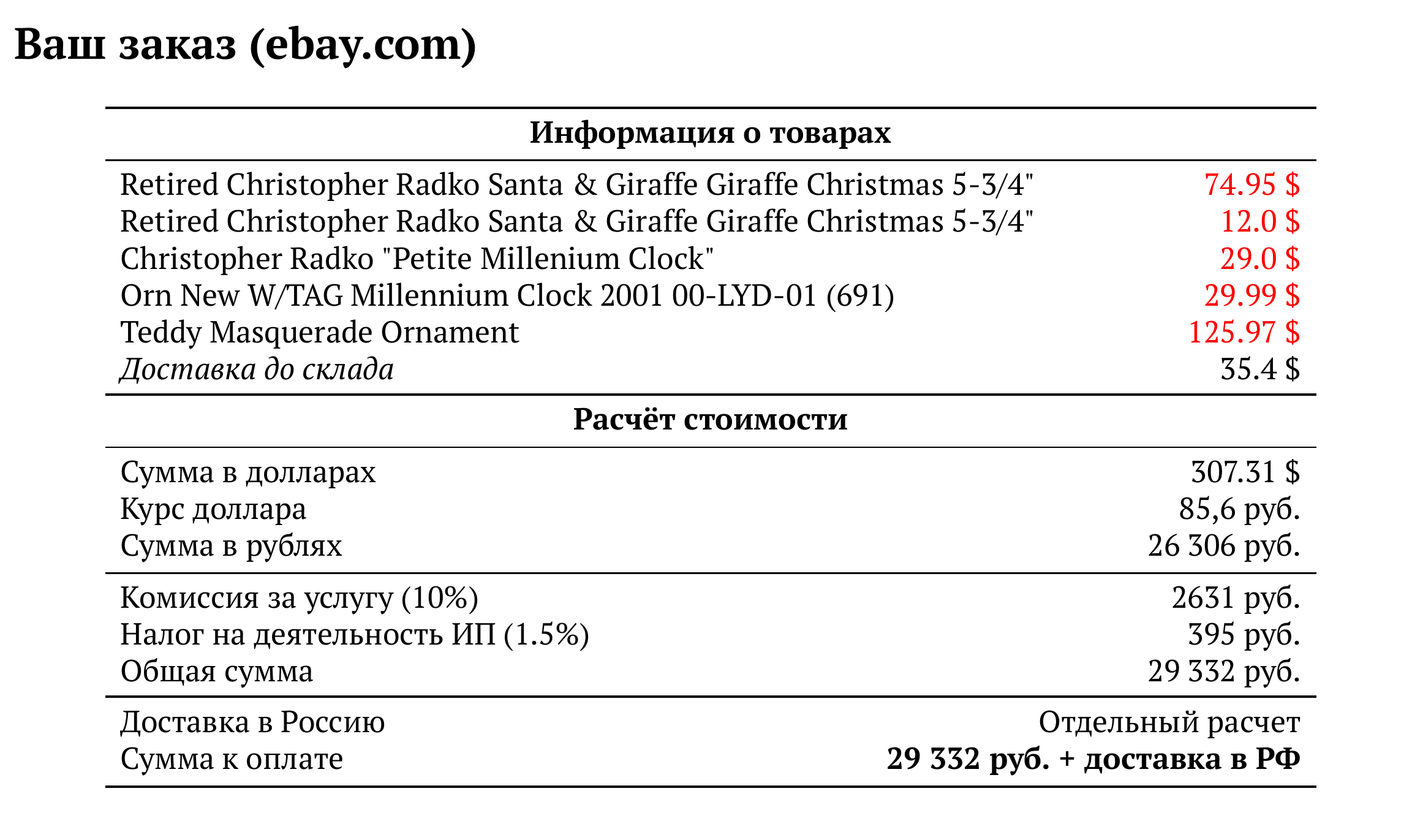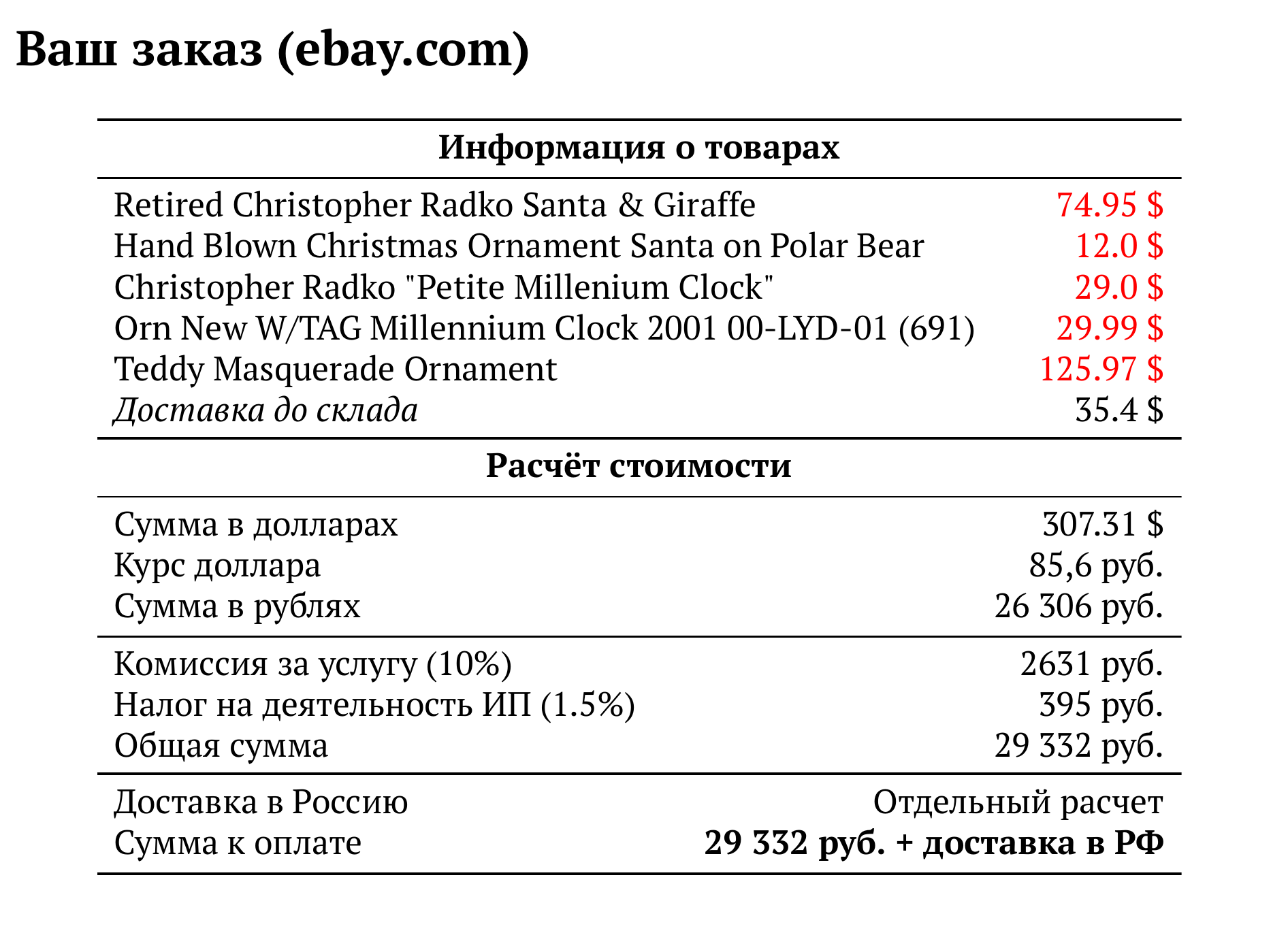 Расчет для ebay.com — 29 332 руб.