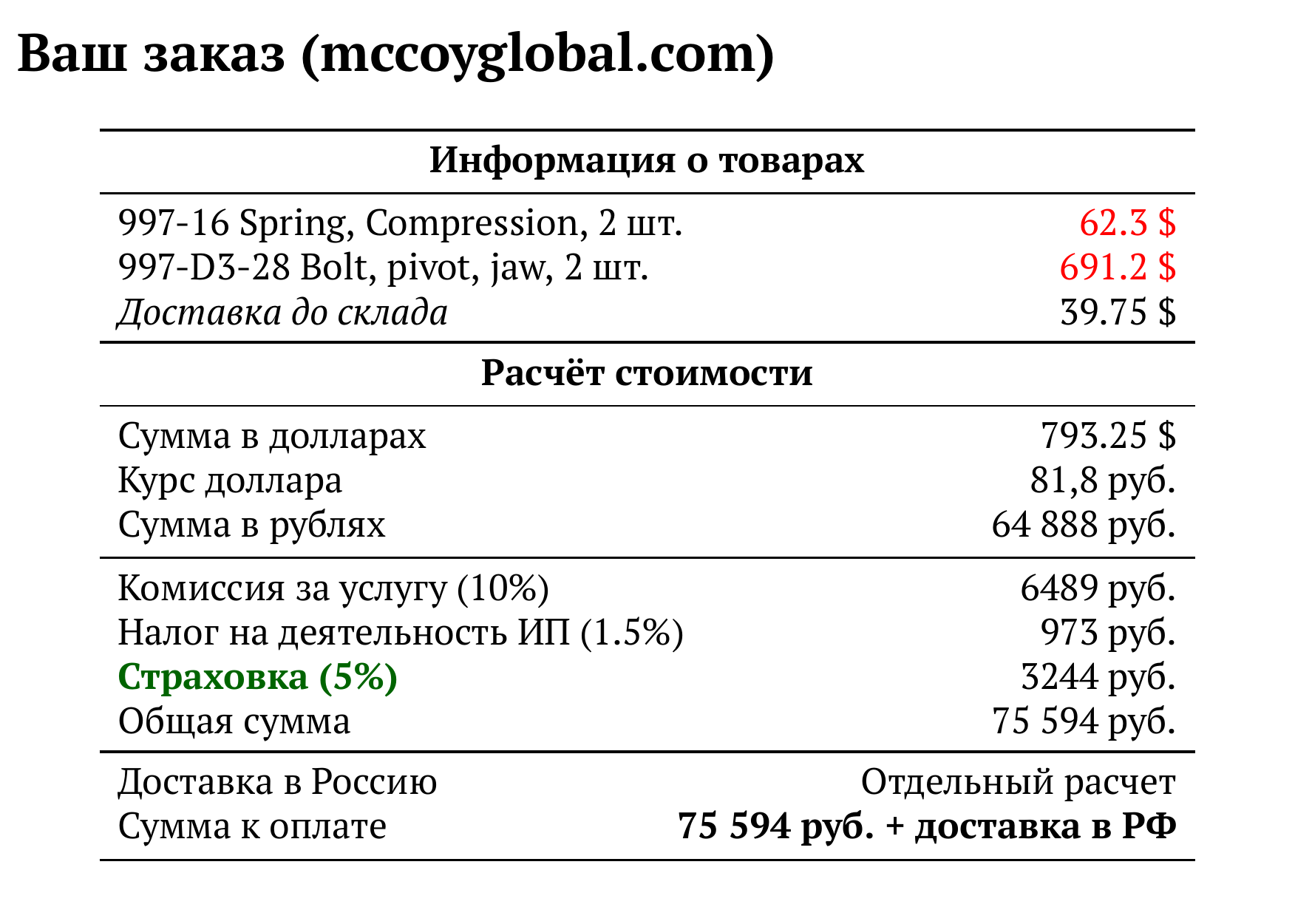 Расчет для mccoyglobal.com — 75 594 руб.