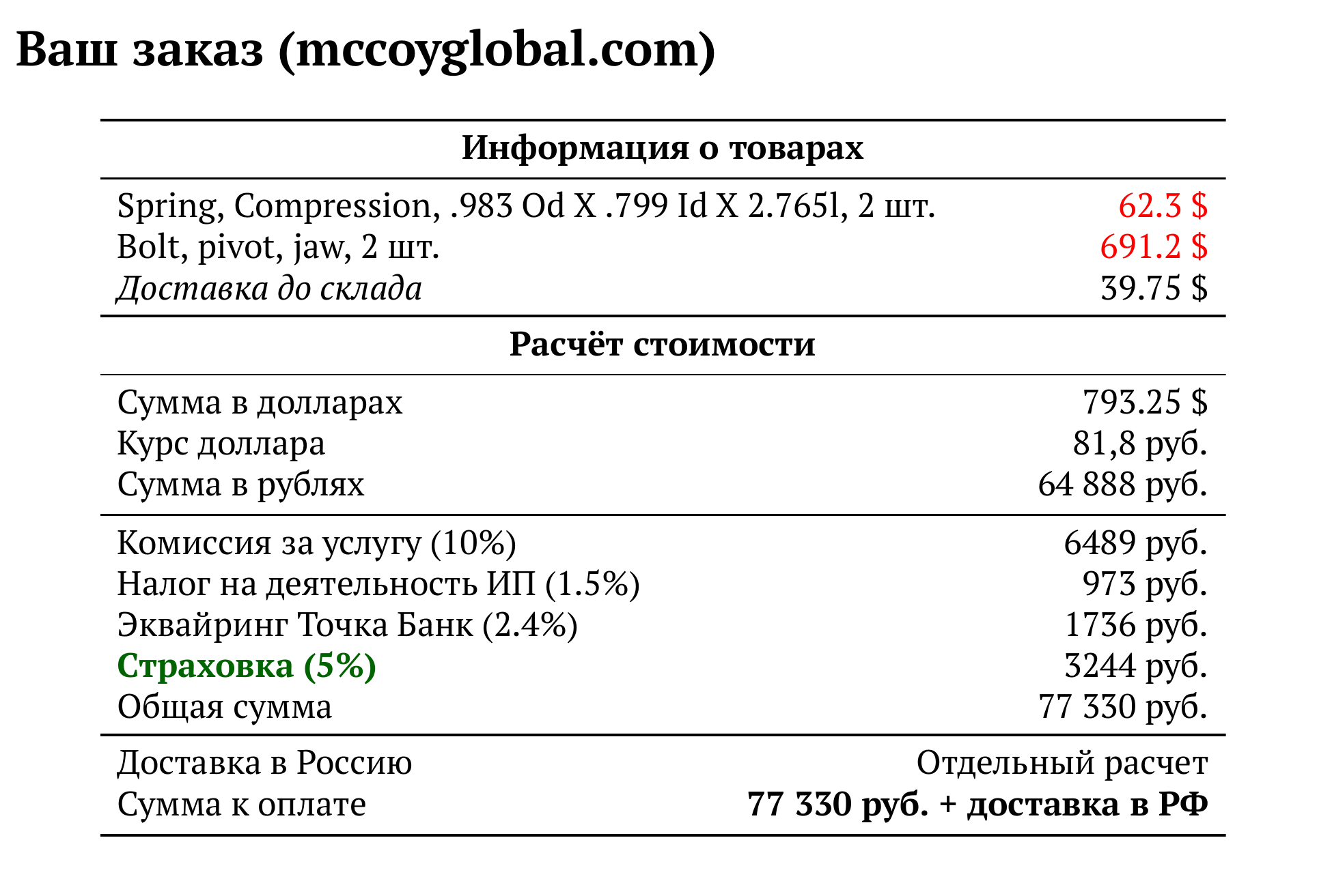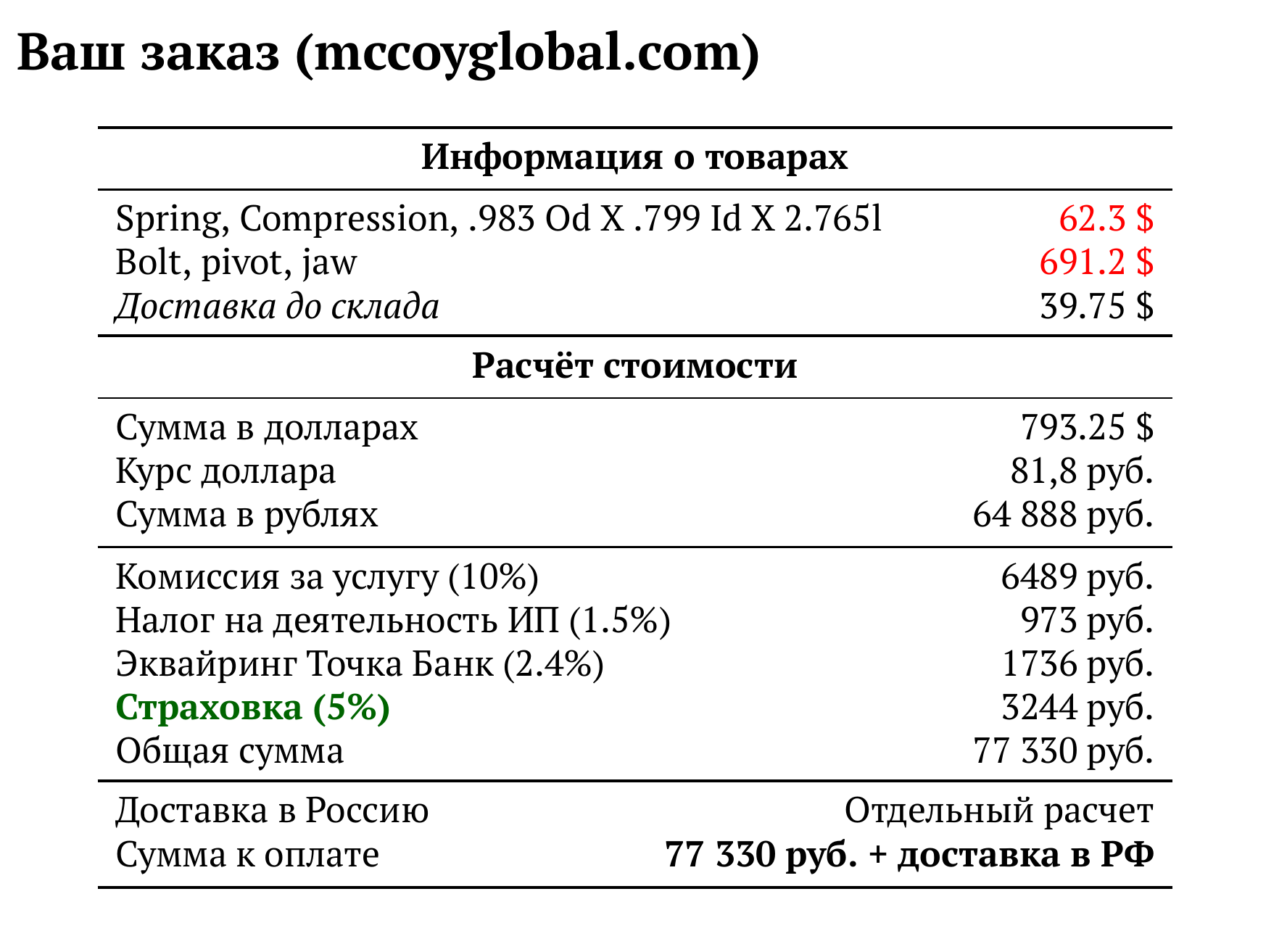 Расчет для mccoyglobal.com — 77 330 руб.