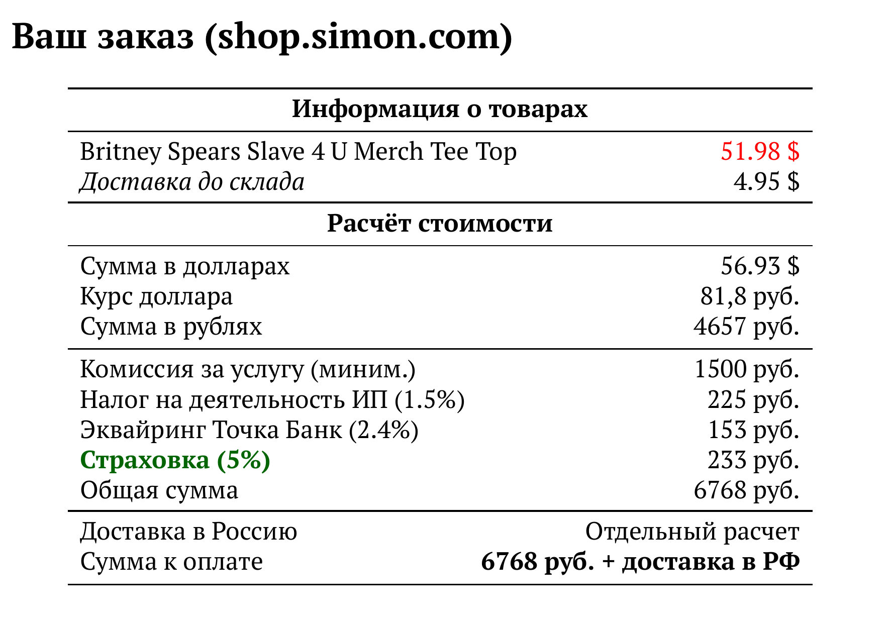 Расчет для shop.simon.com — 6768 руб.
