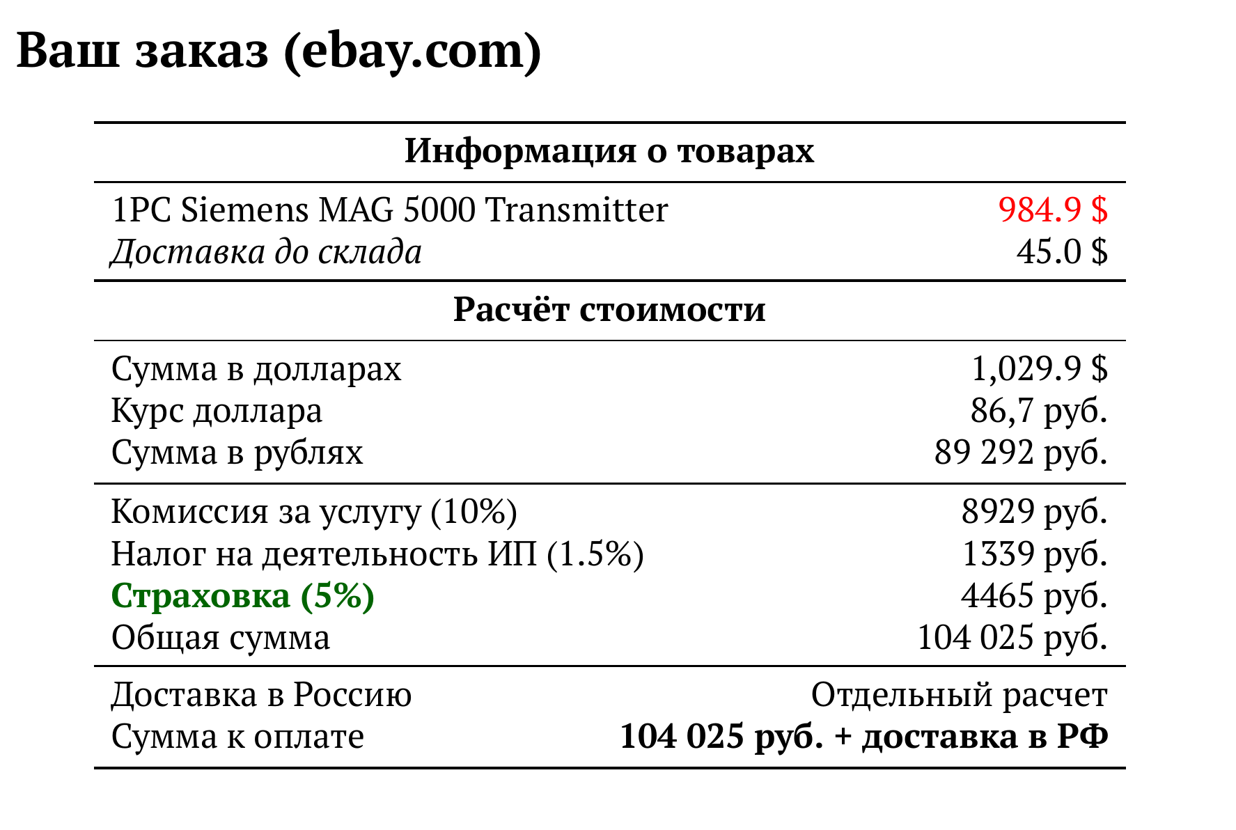 Расчет для ebay.com — 104 025 руб.