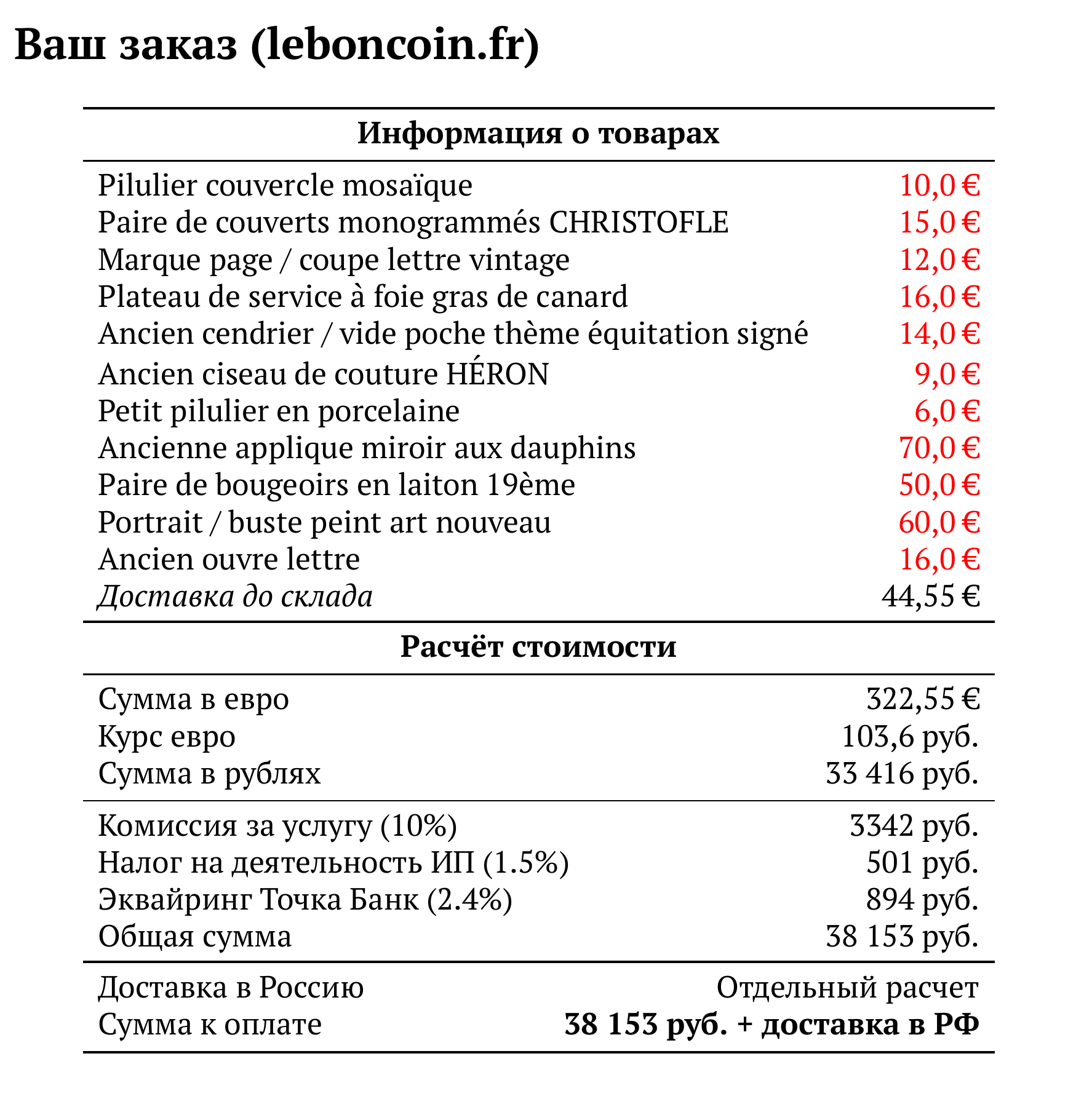 Расчет для leboncoin.fr — 38 153 руб.