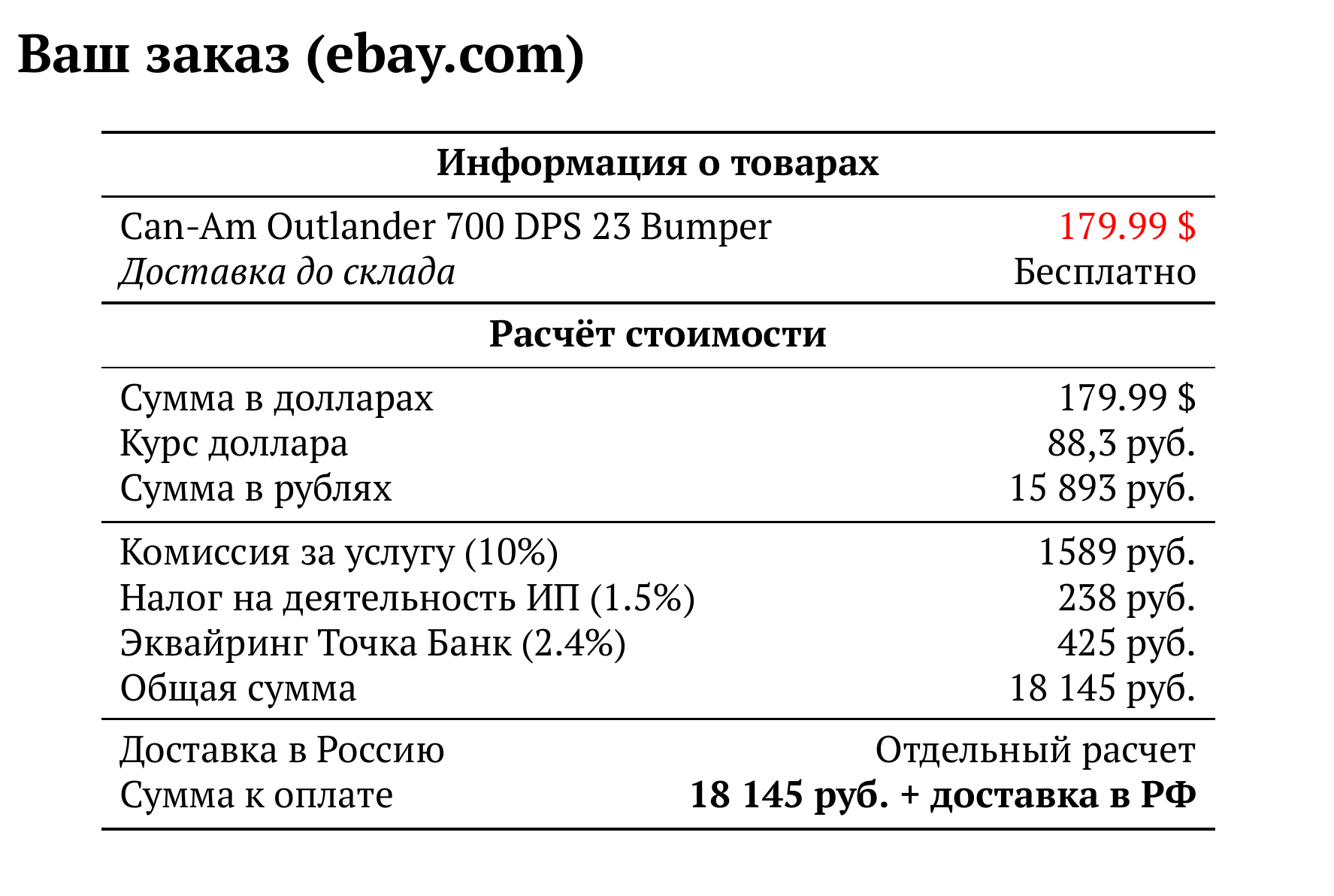 Расчет для ebay.com — 18 145 руб.