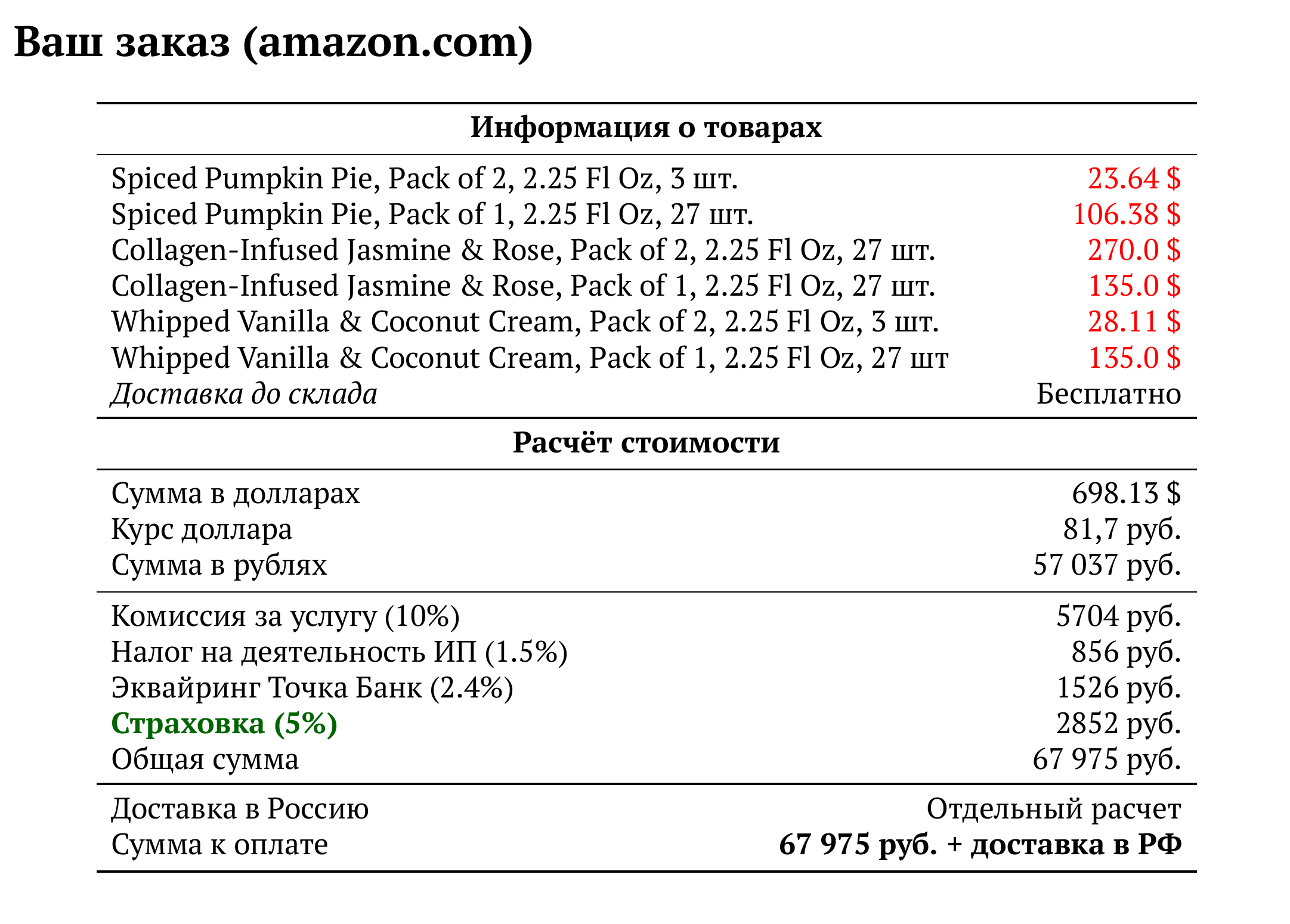 Расчет для amazon.com — 67 975 руб.