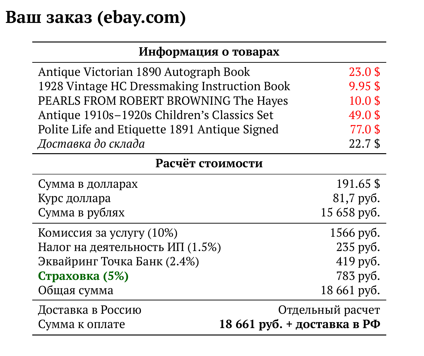 Расчет для ebay.com — 18 661 руб.