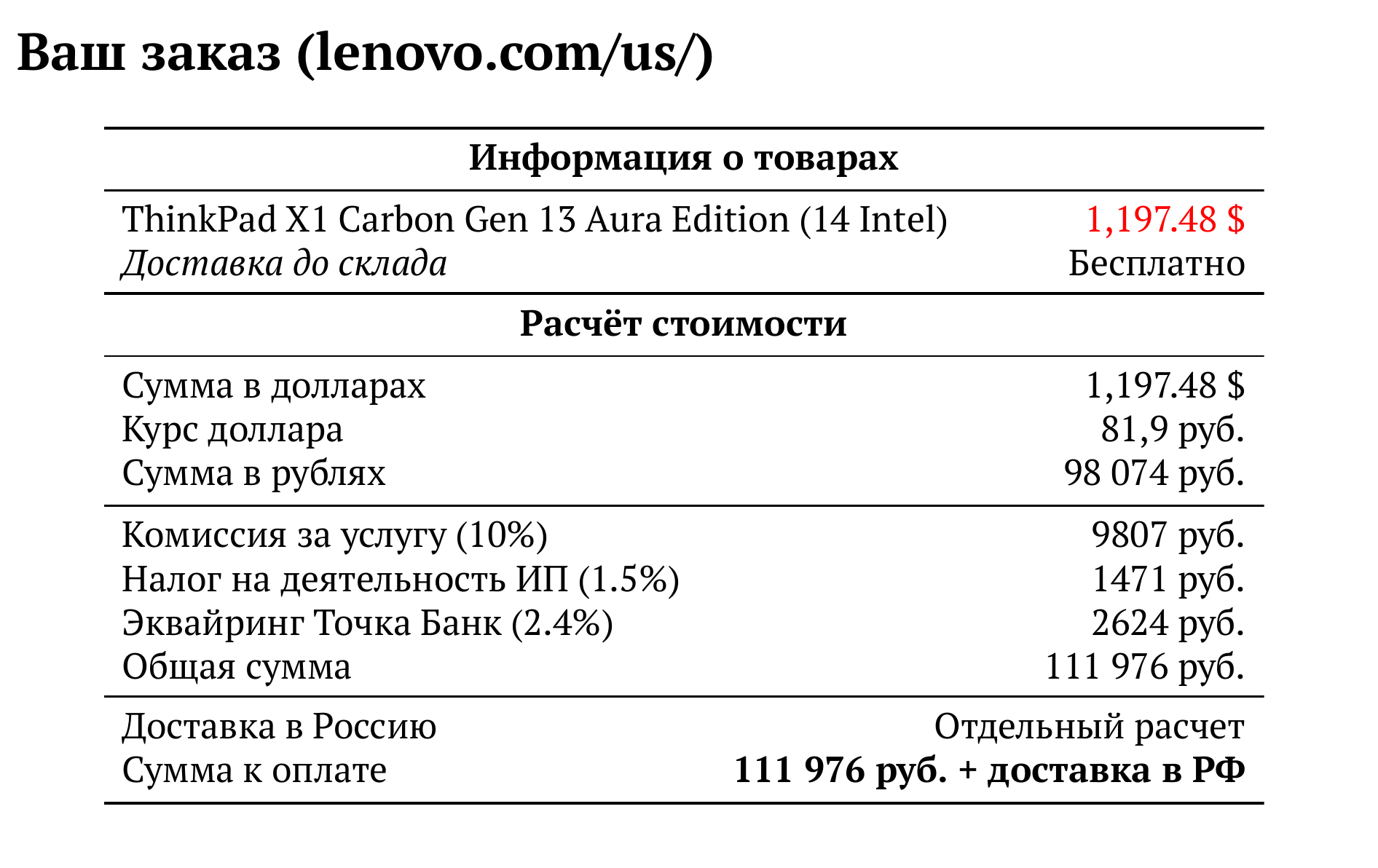 Расчет для lenovo.com/us/ — 111 976 руб.