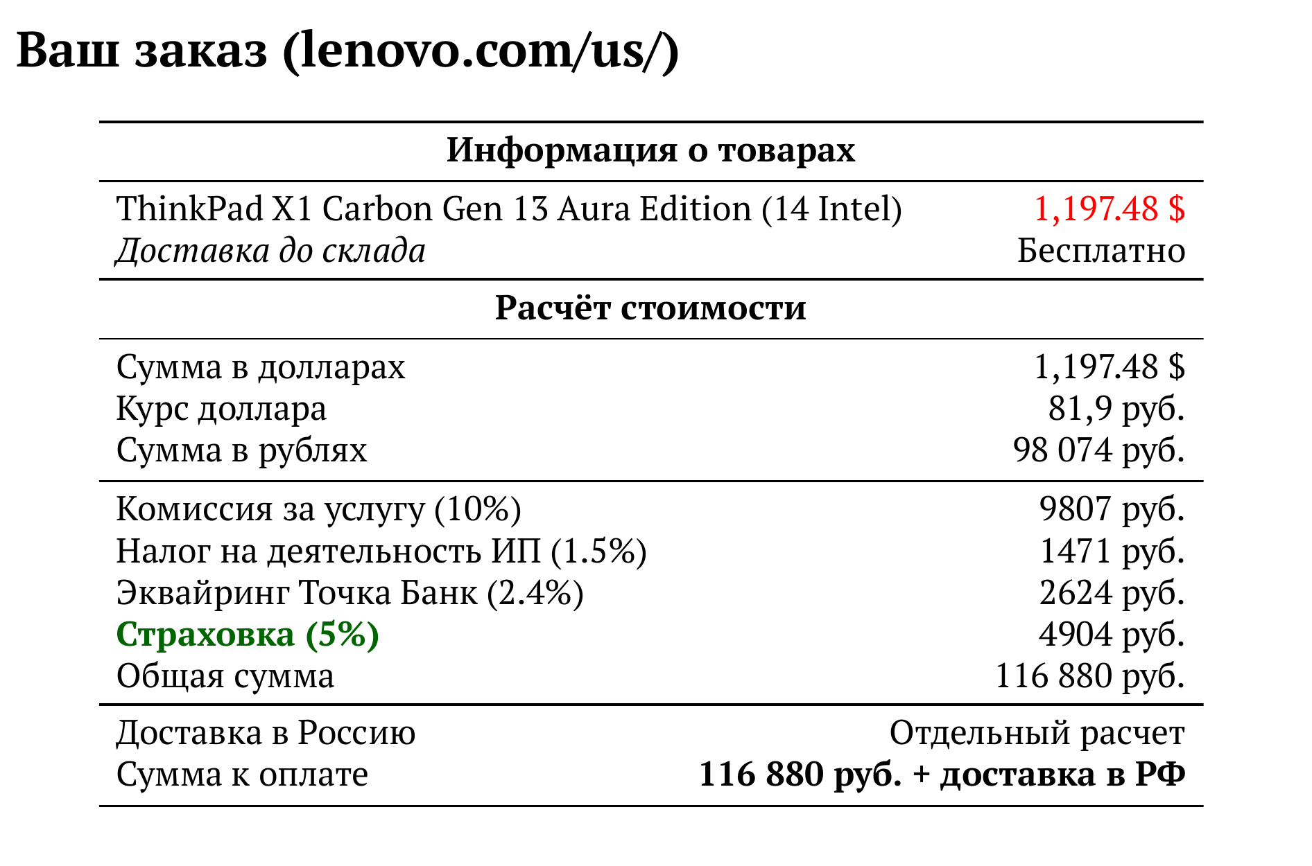 Расчет для lenovo.com/us/ — 116 880 руб.