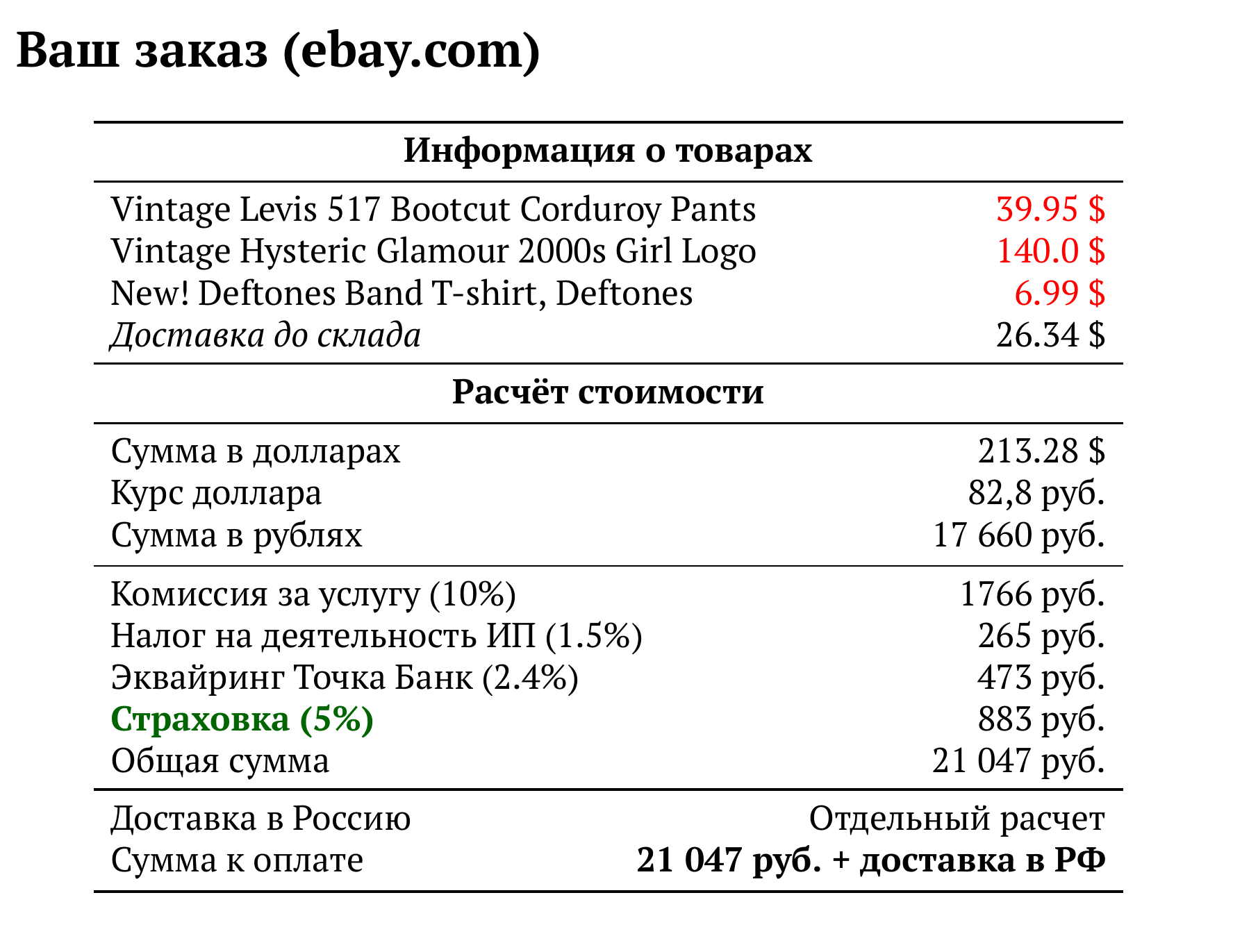 Расчет для ebay.com — 21 047 руб.