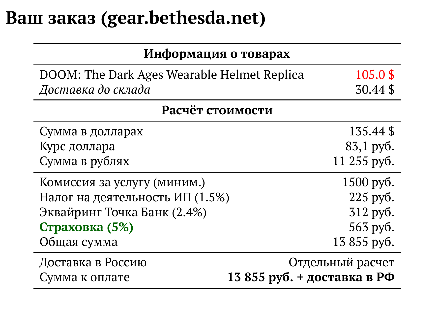 Расчет для gear.bethesda.net — 13 855 руб.