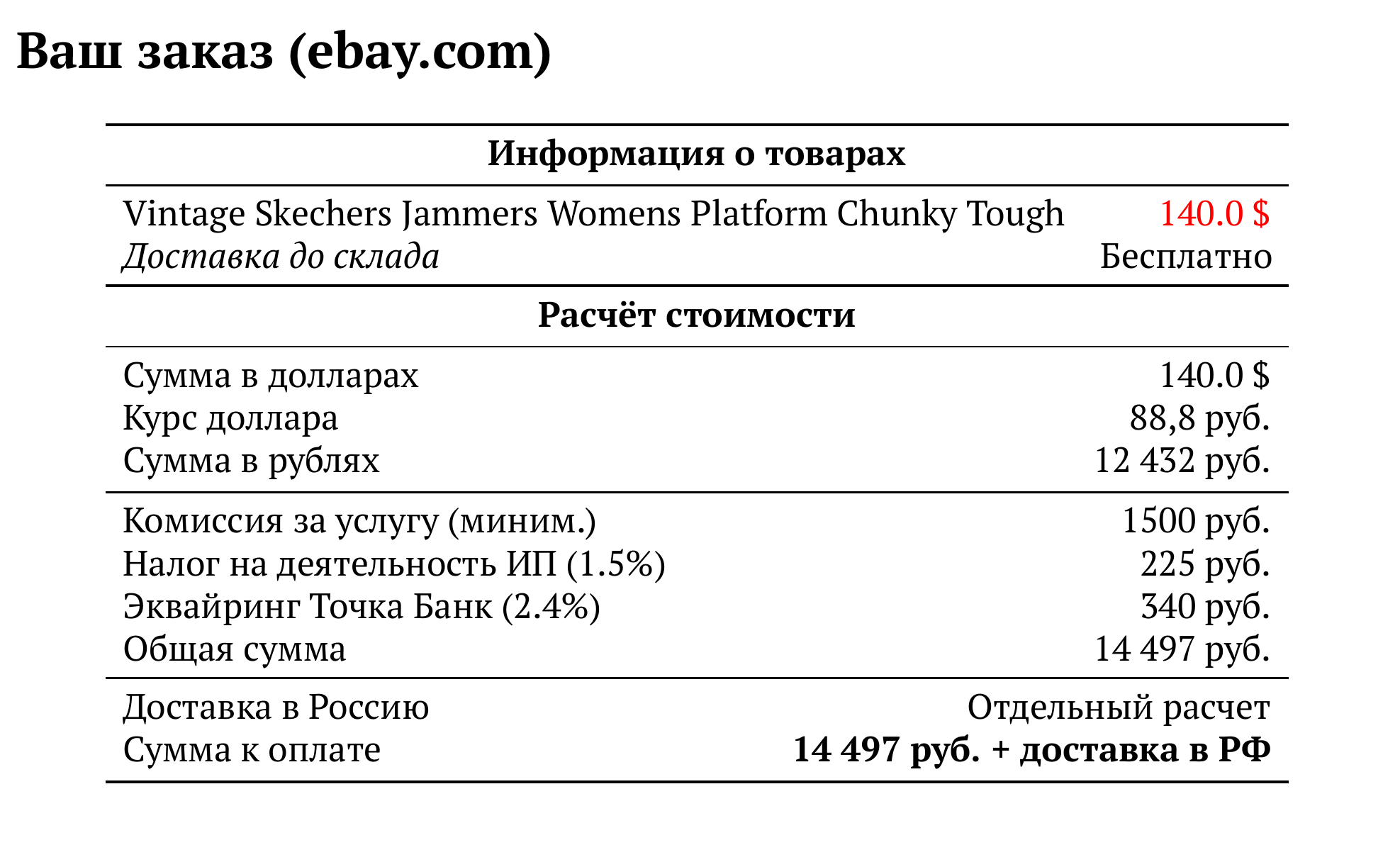 Расчет для ebay.com — 14 497 руб.