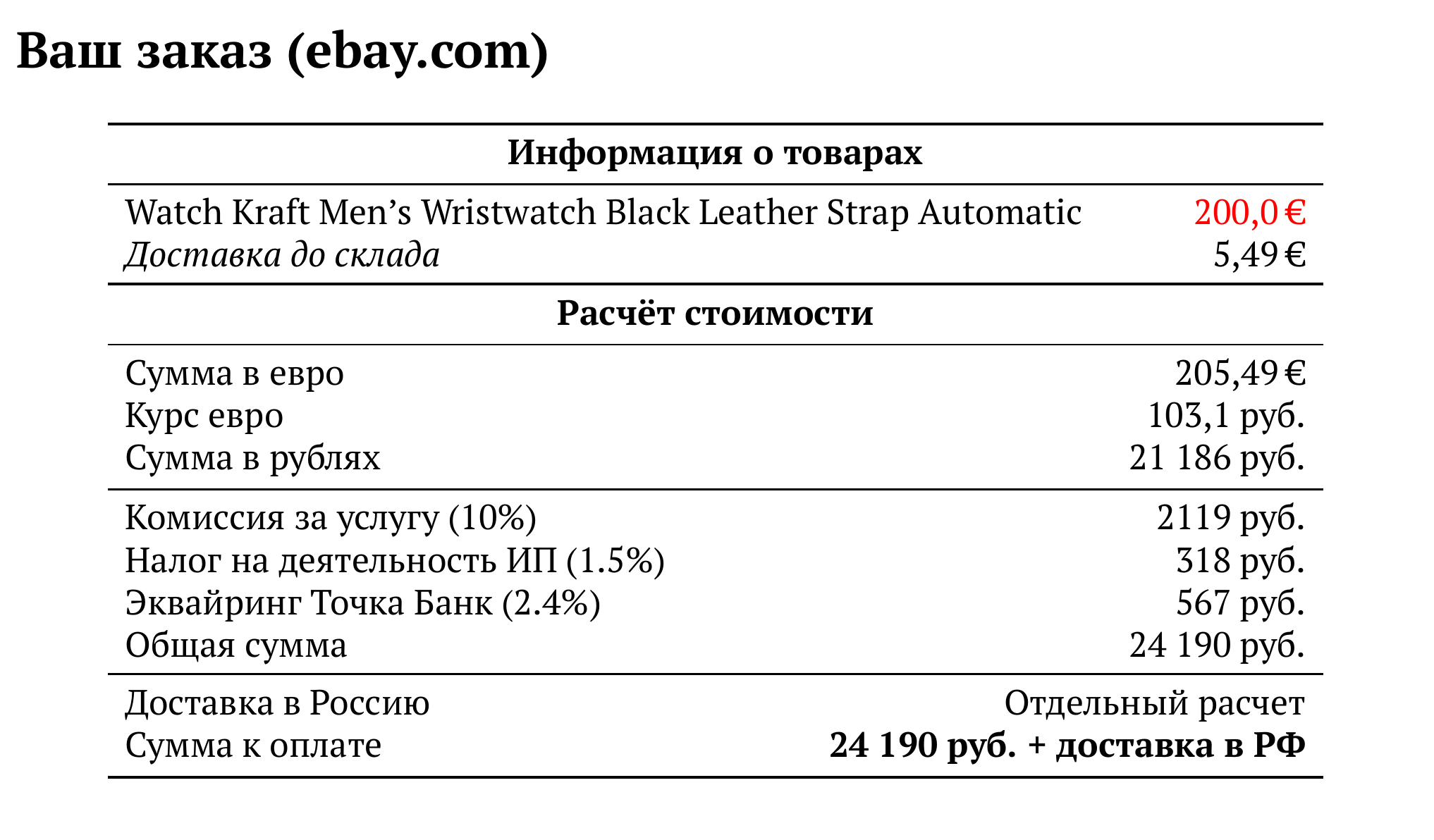 Расчет для ebay.com — 24 190 руб.