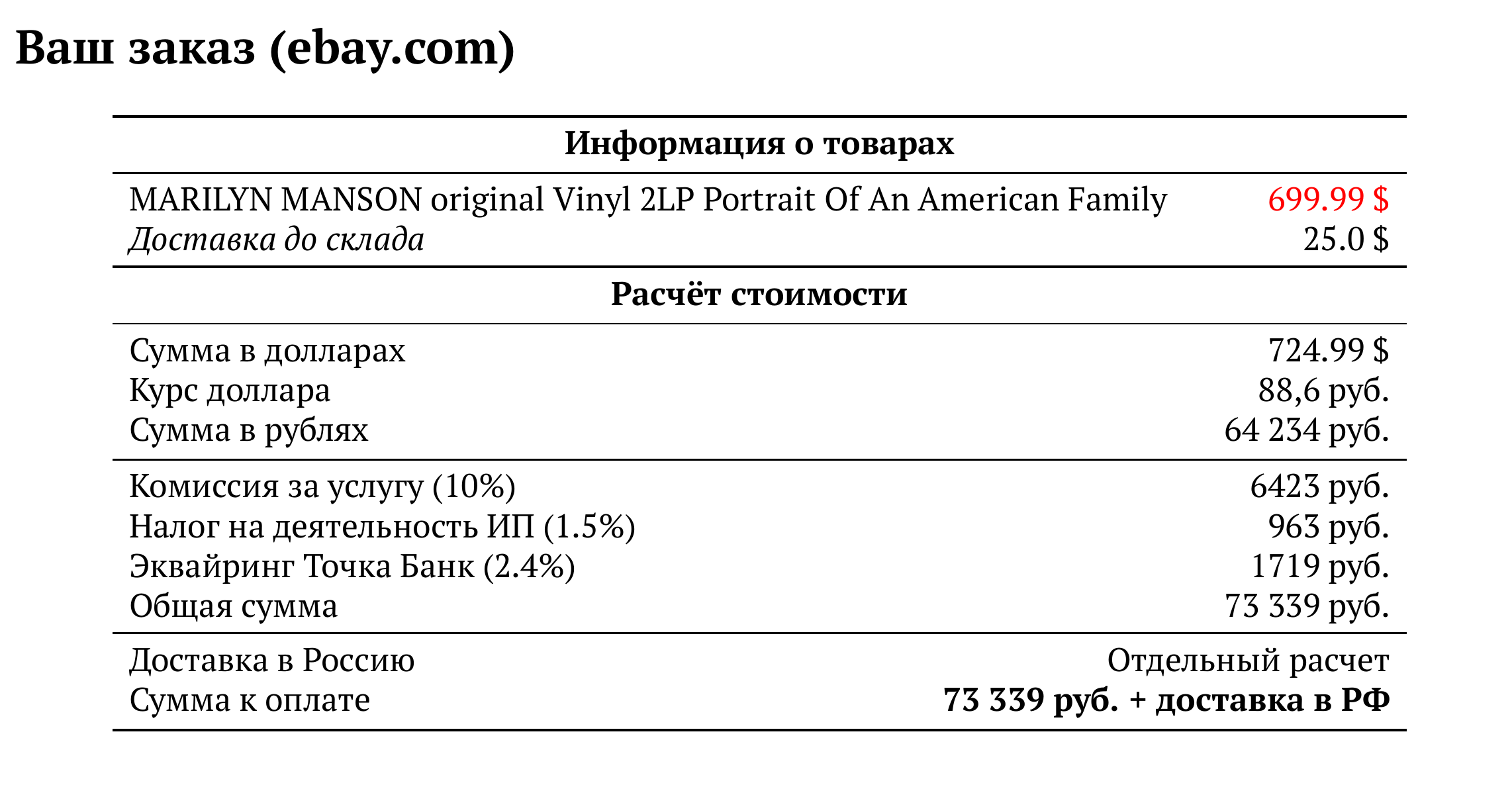 Расчет для ebay.com — 73 339 руб.