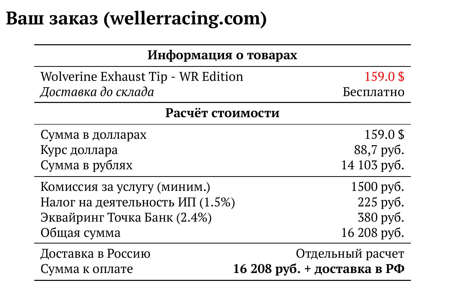 Расчет для wellerracing.com — 16 208 руб.