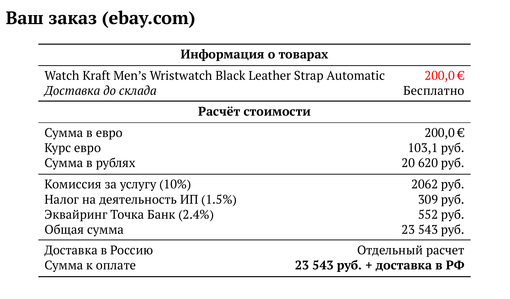 Расчет для ebay.com — 23 543 руб.