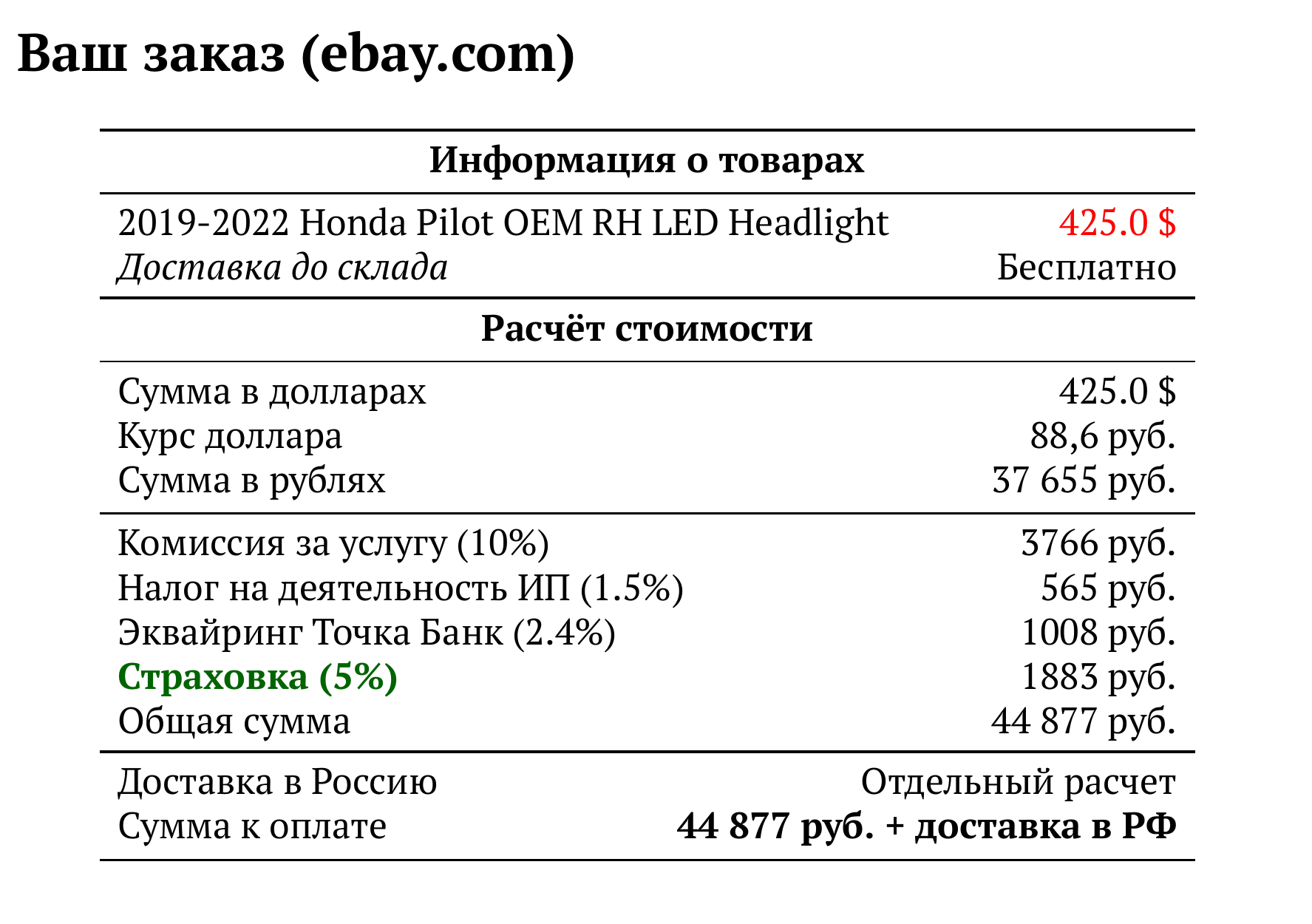 Расчет для ebay.com — 44 877 руб.