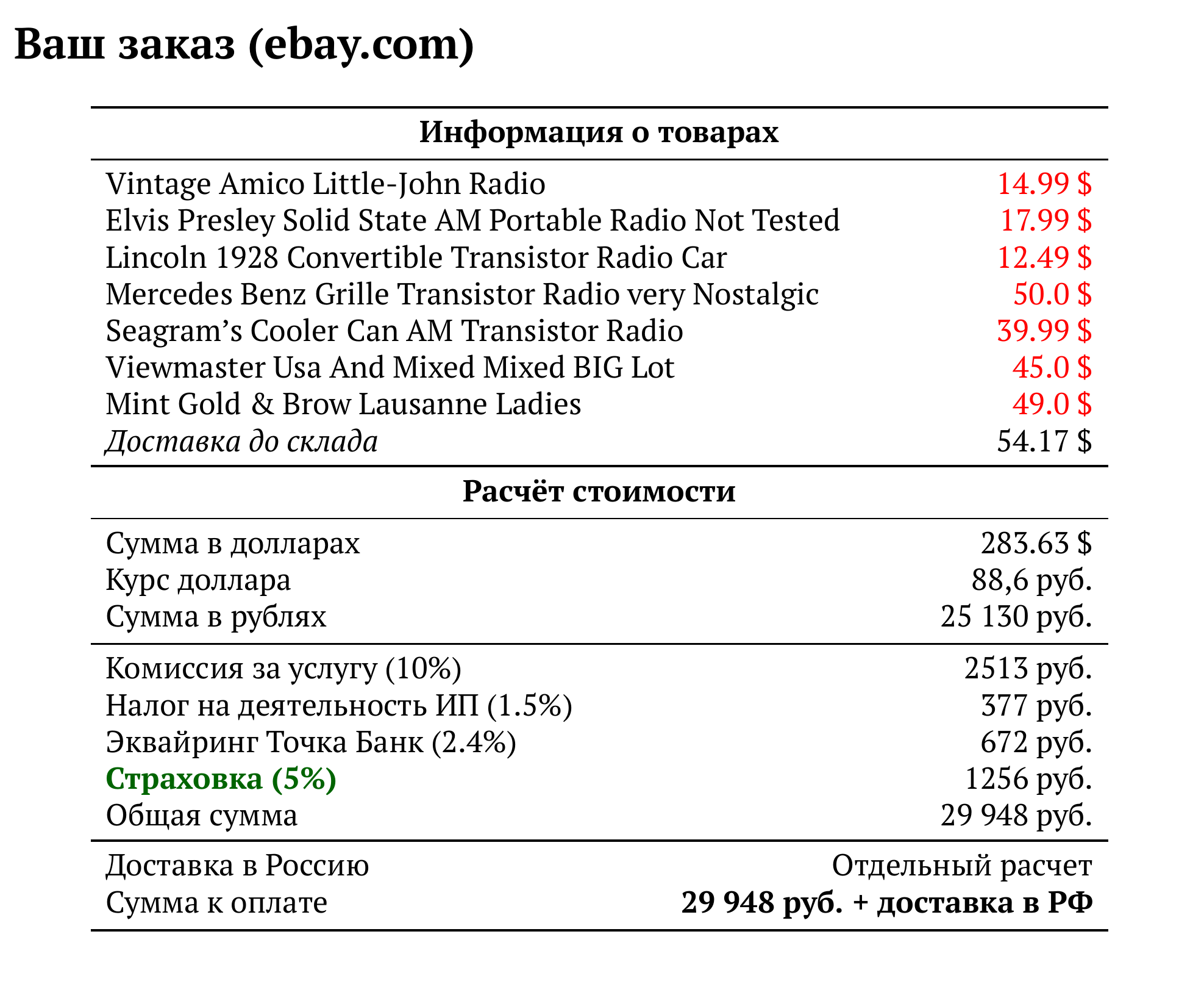 Расчет для ebay.com — 29 948 руб.
