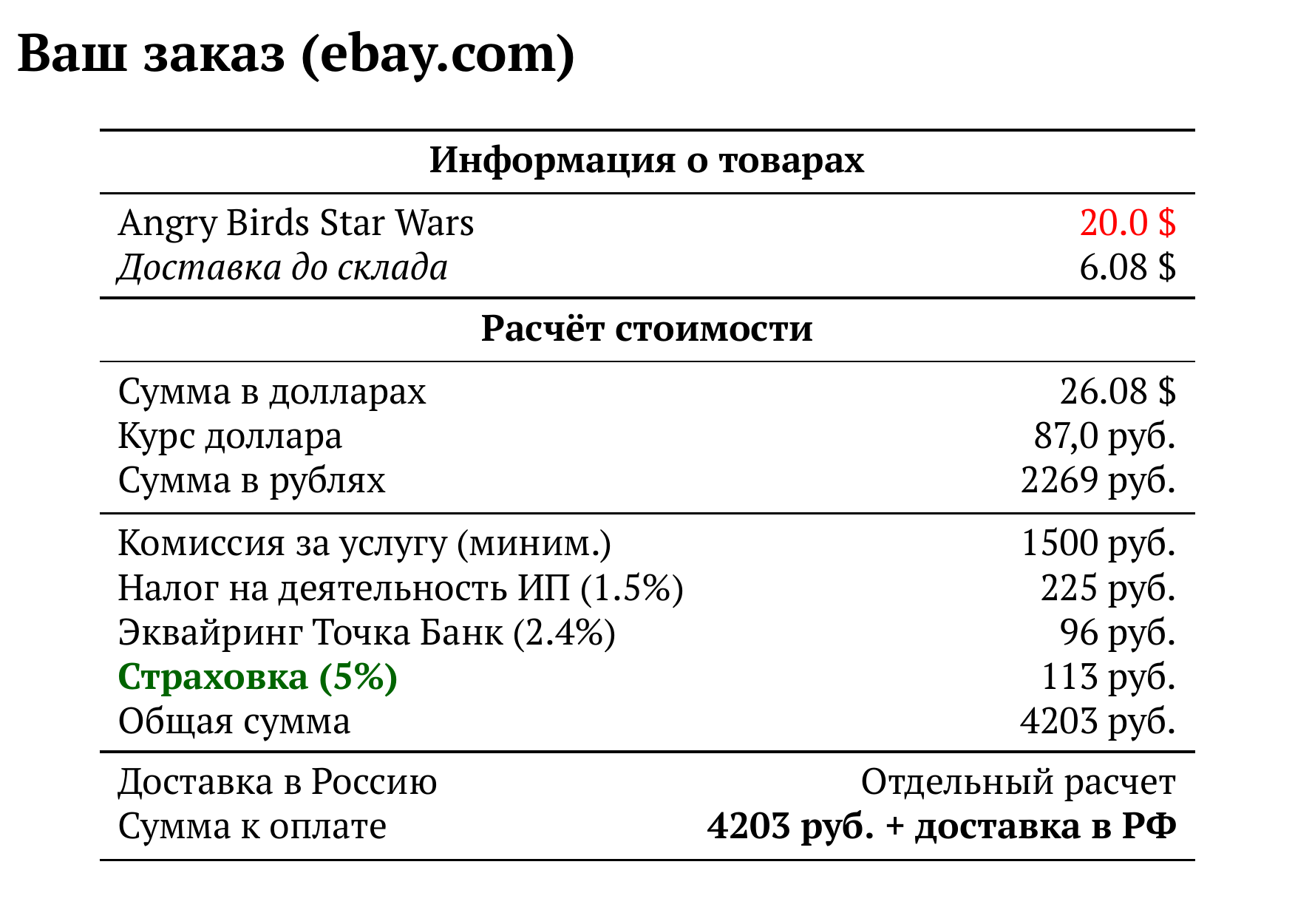 Расчет для ebay.com — 4203 руб.