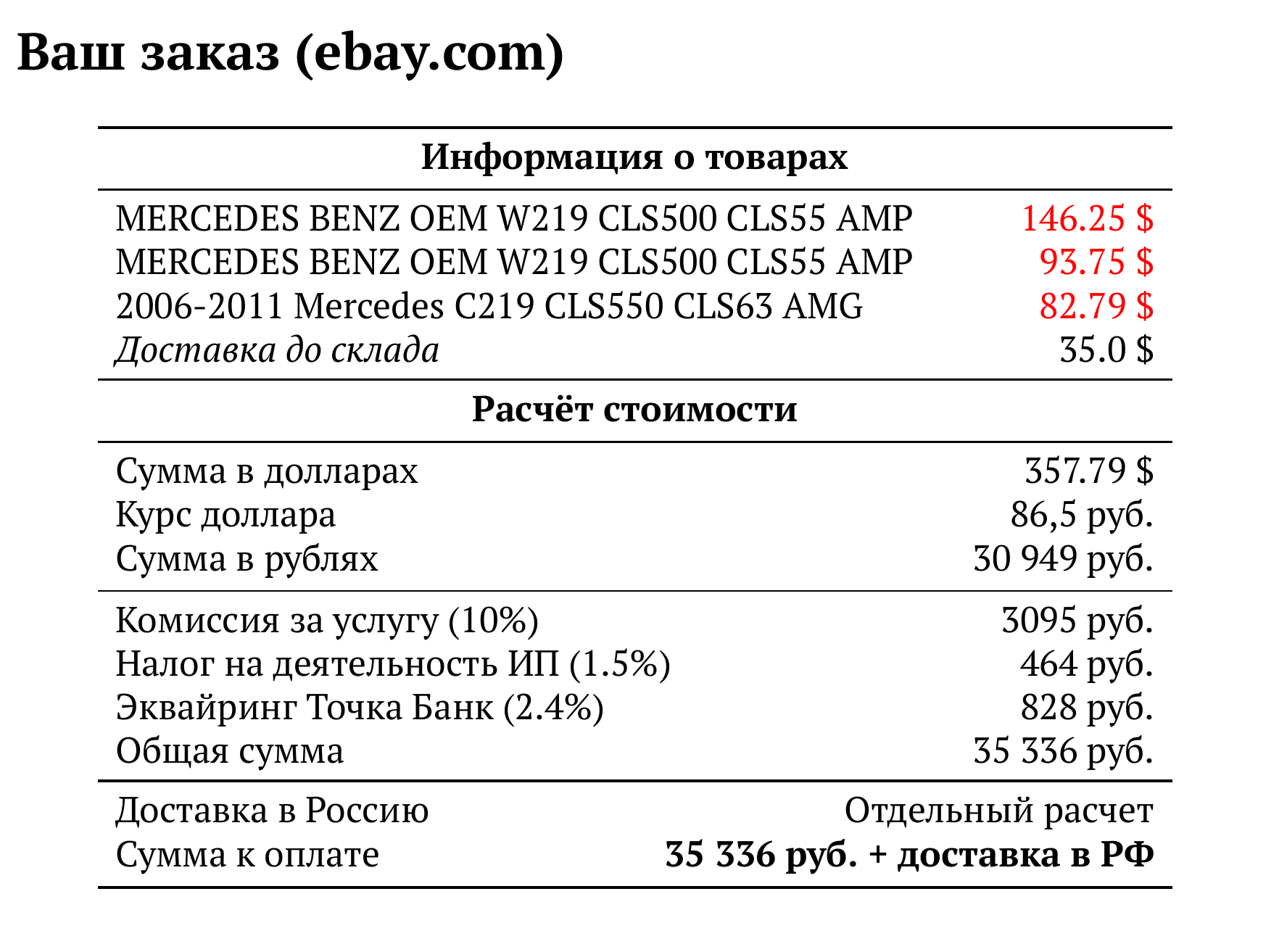 Расчет для ebay.com — 35 336 руб.