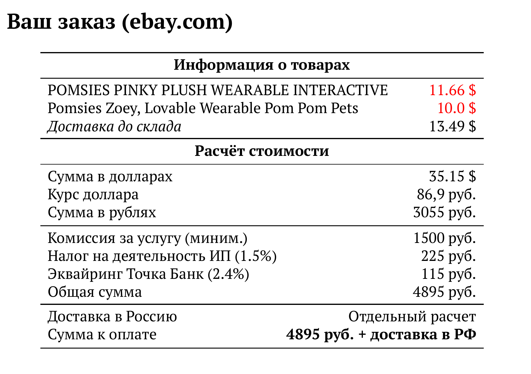 Расчет для ebay.com — 4895 руб.