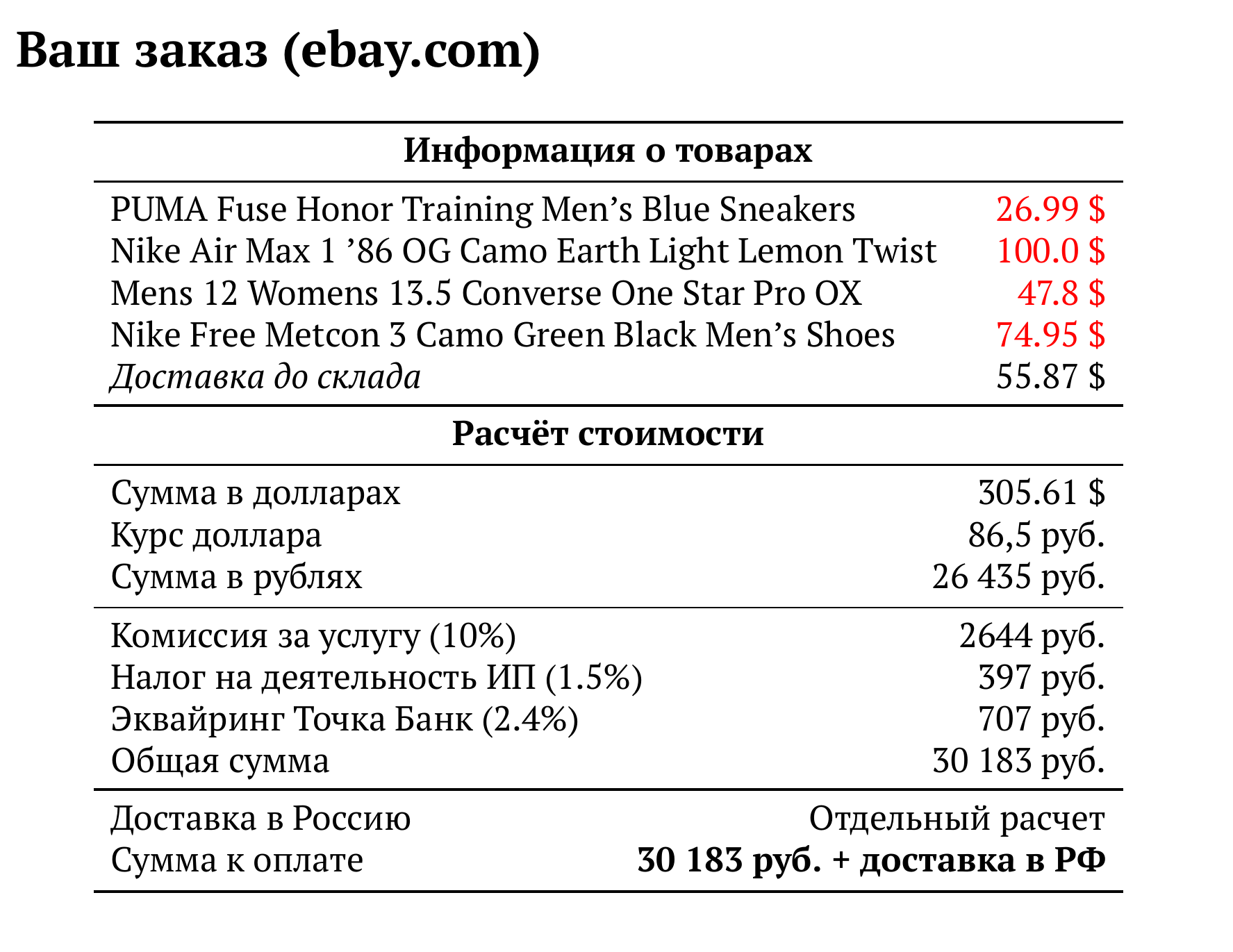 Расчет для ebay.com — 30 183 руб.