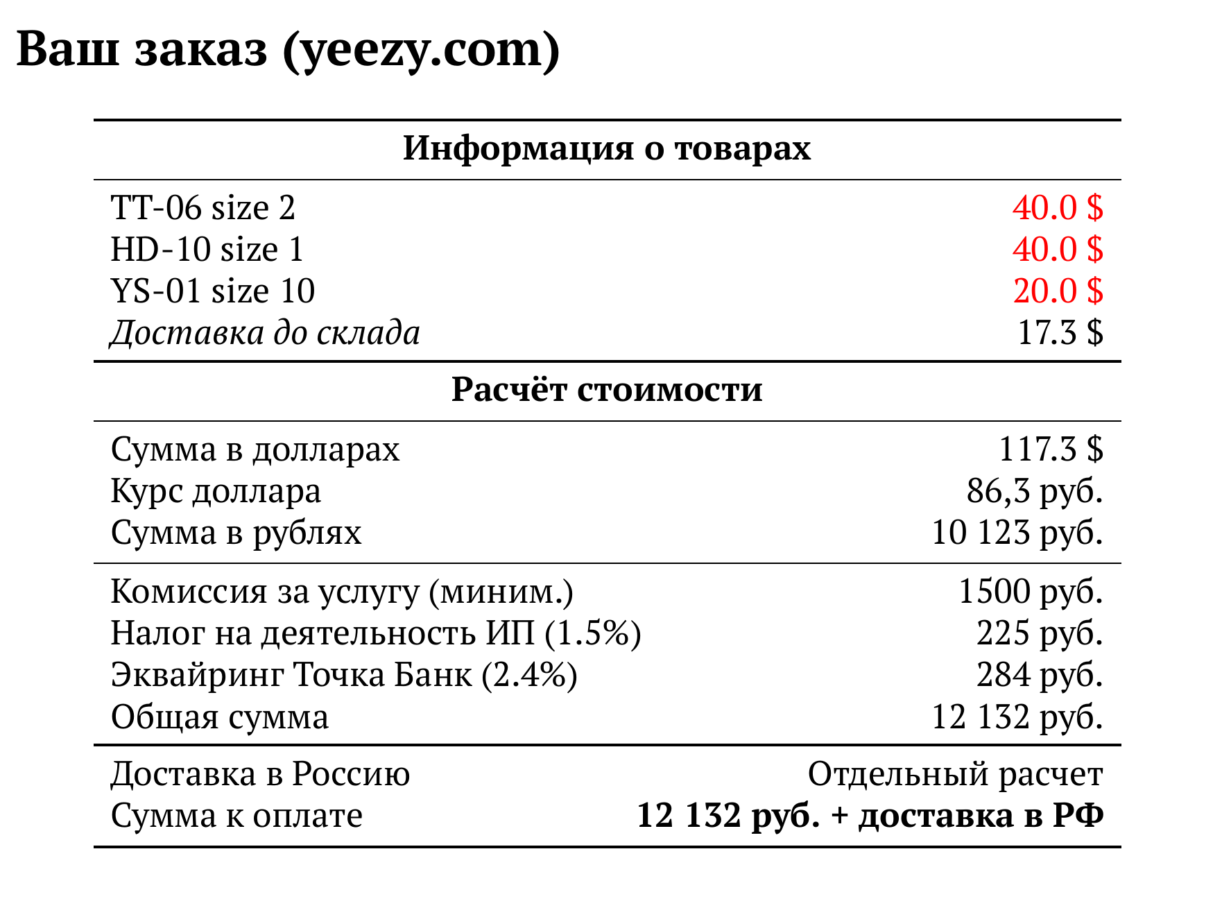 Расчет для yeezy.com — 12 132 руб.