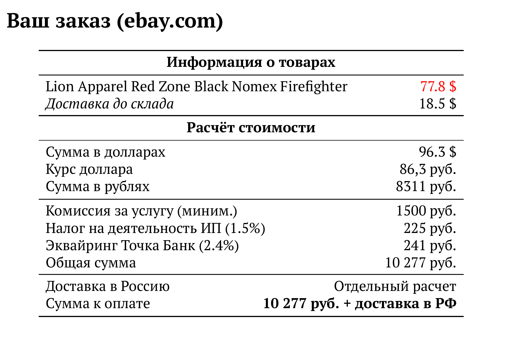 Расчет для ebay.com — 10 277 руб.