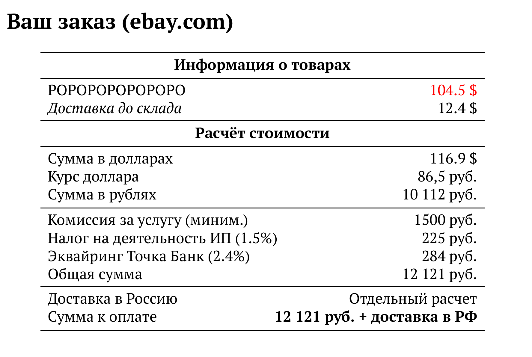 Расчет для ebay.com — 12 121 руб.