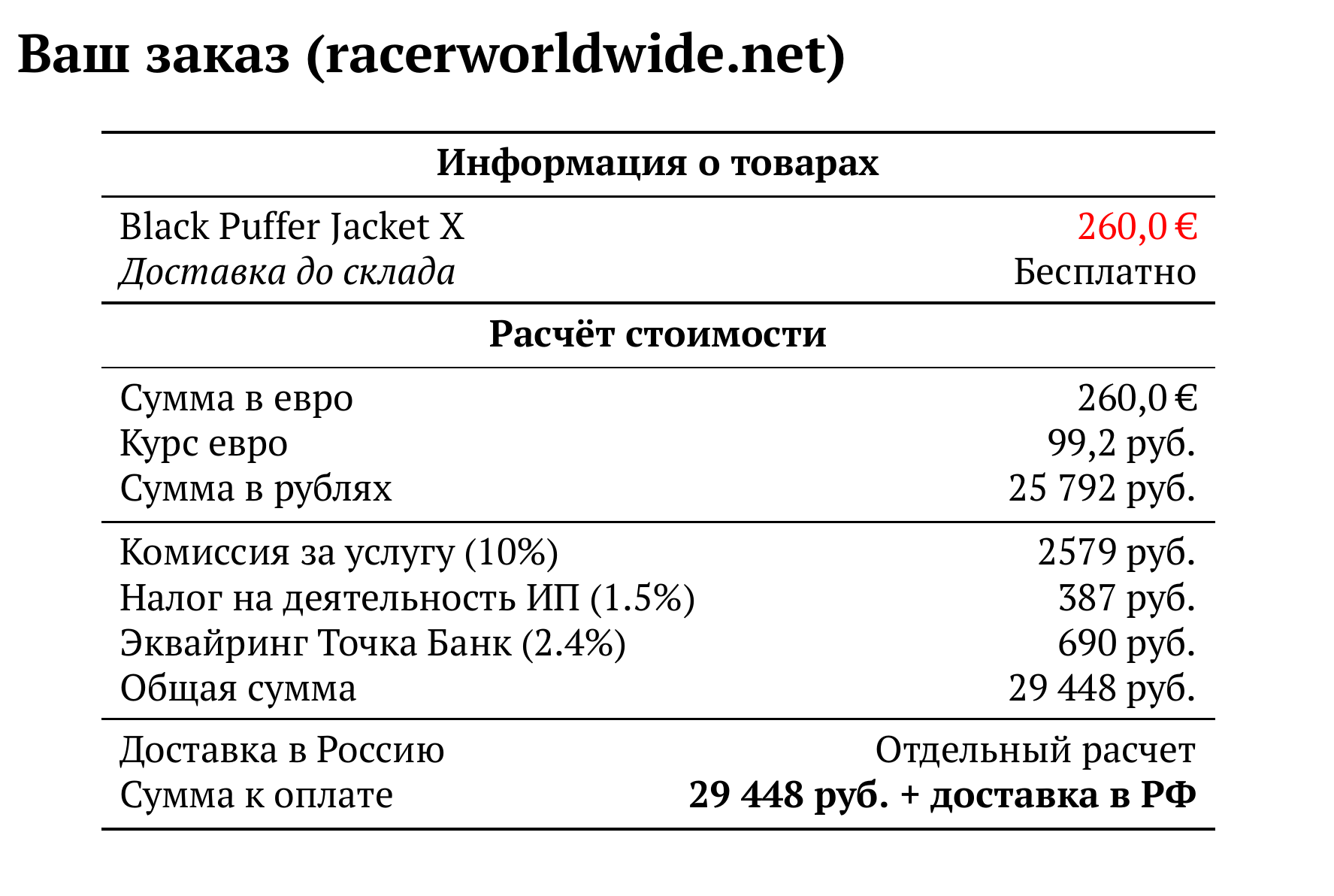 Расчет для racerworldwide.net — 29 448 руб.
