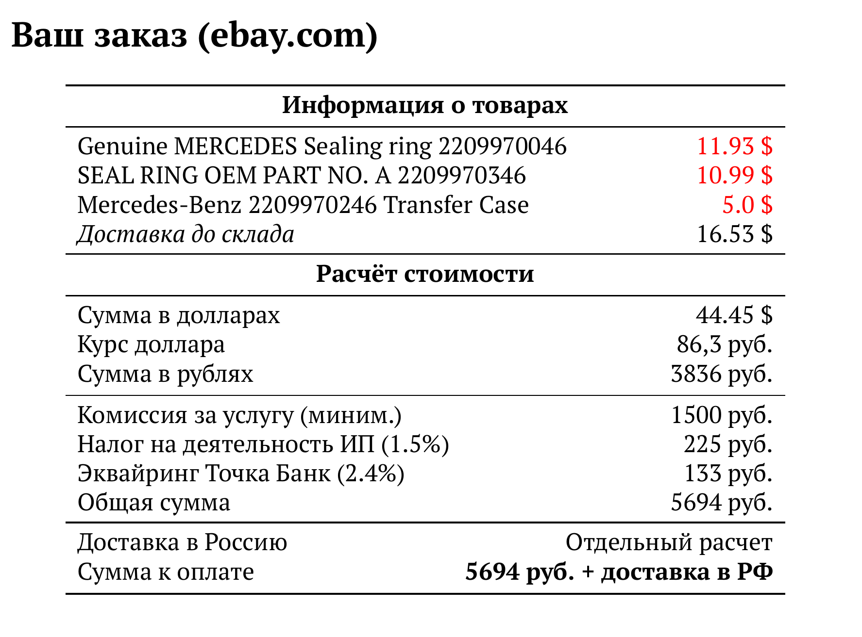 Расчет для ebay.com — 5694 руб.