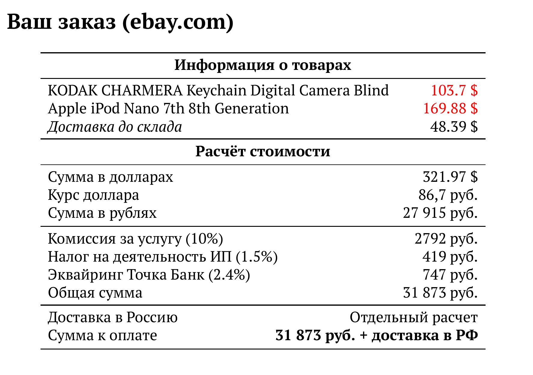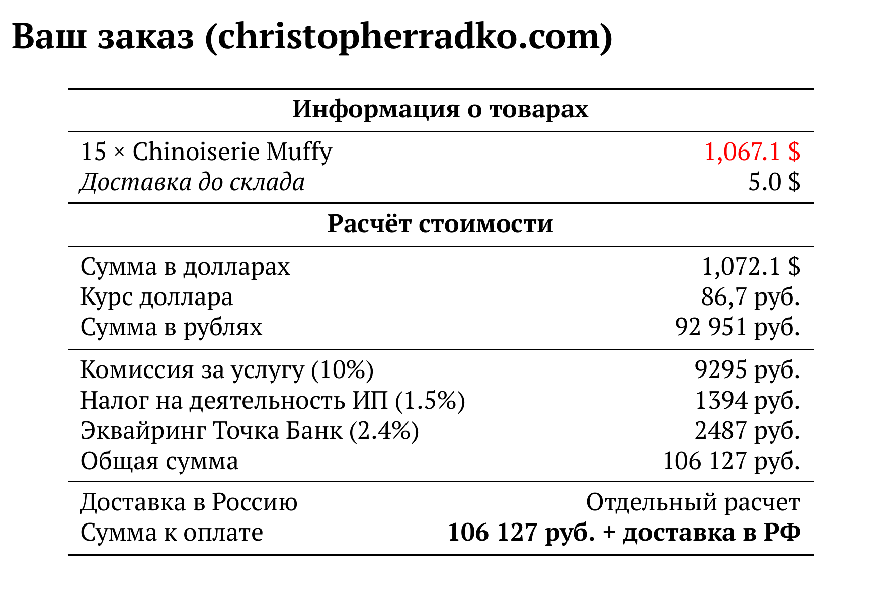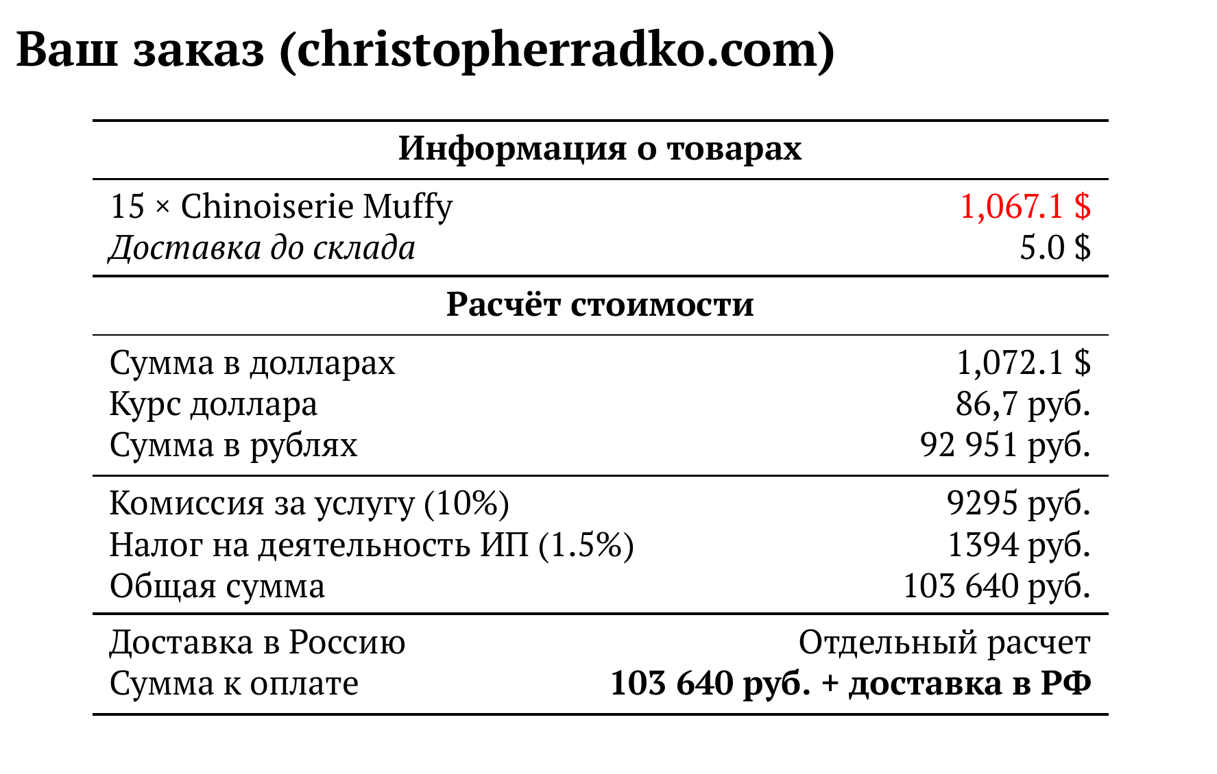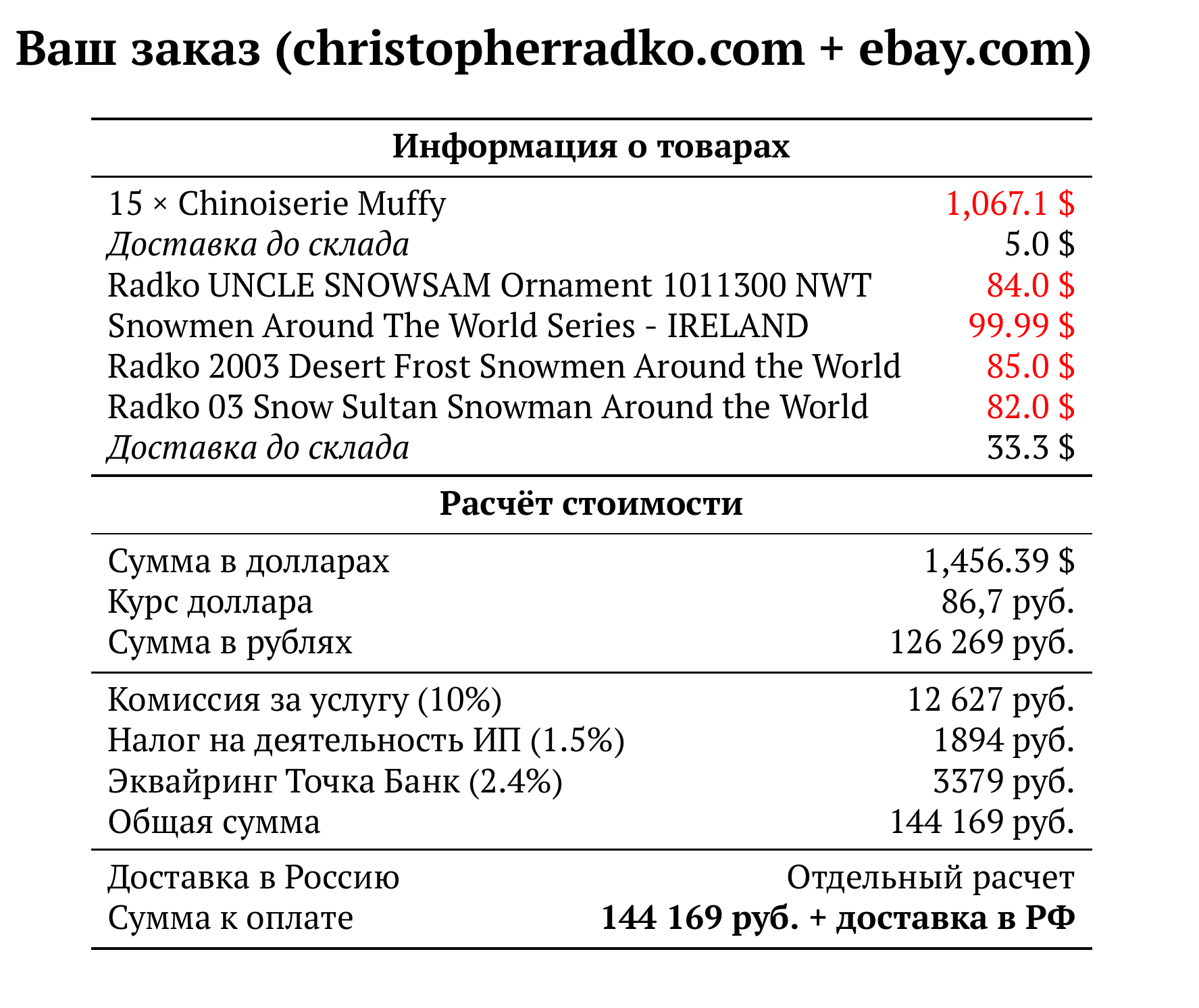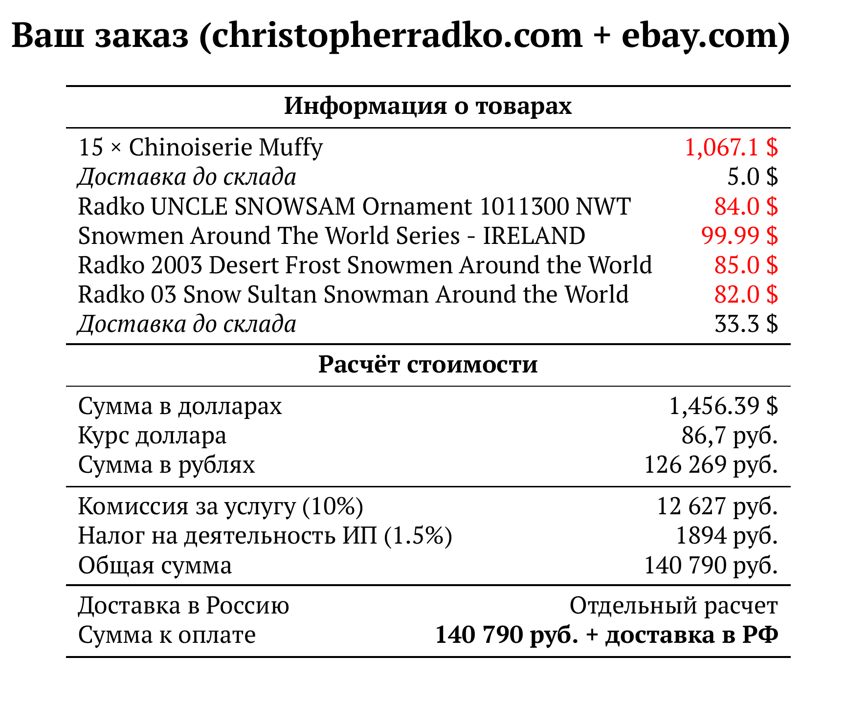 Расчет для christopherradko.com + ebay.com — 140 790 руб.
