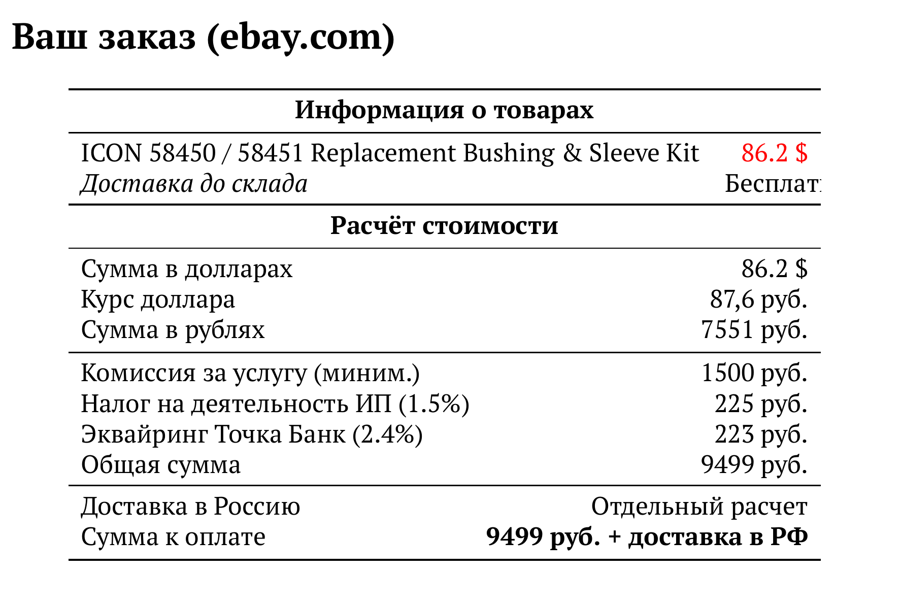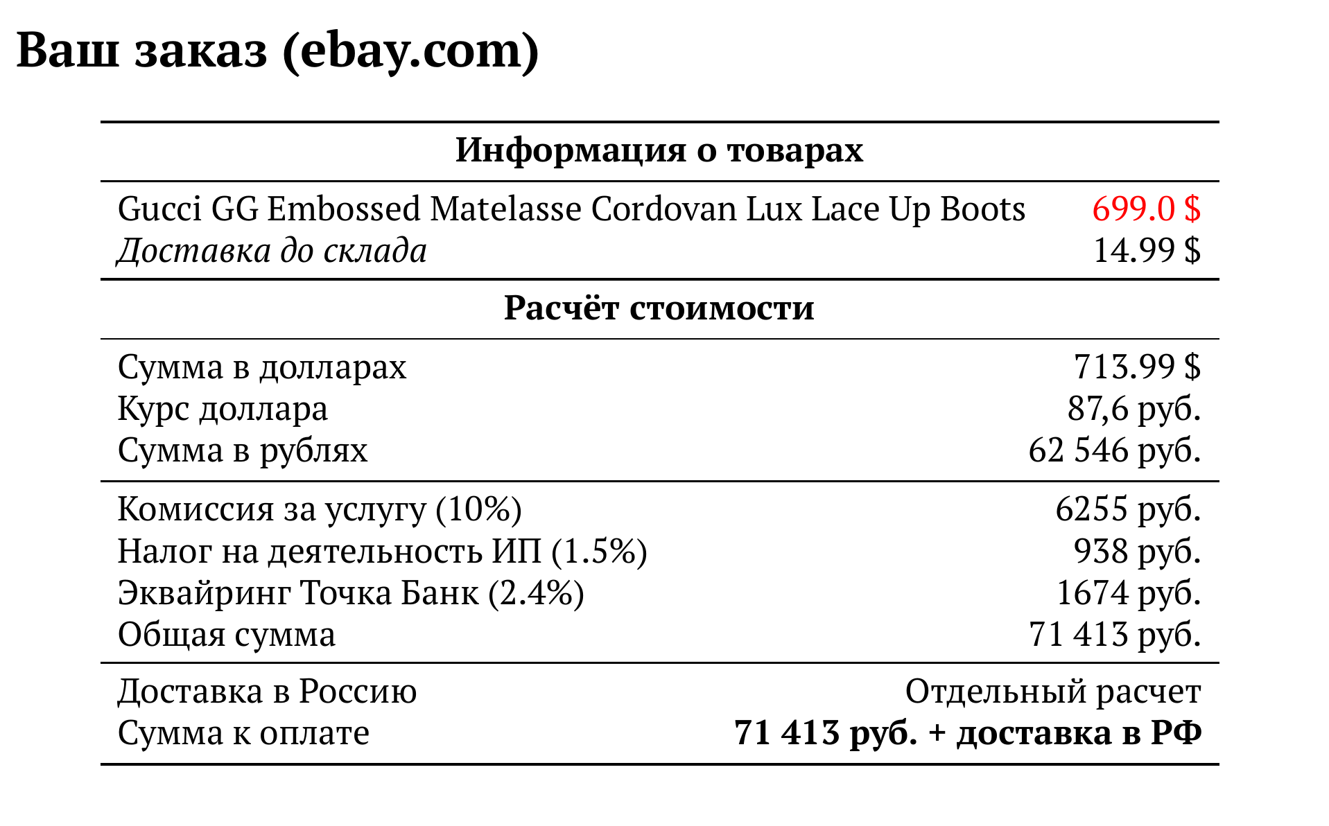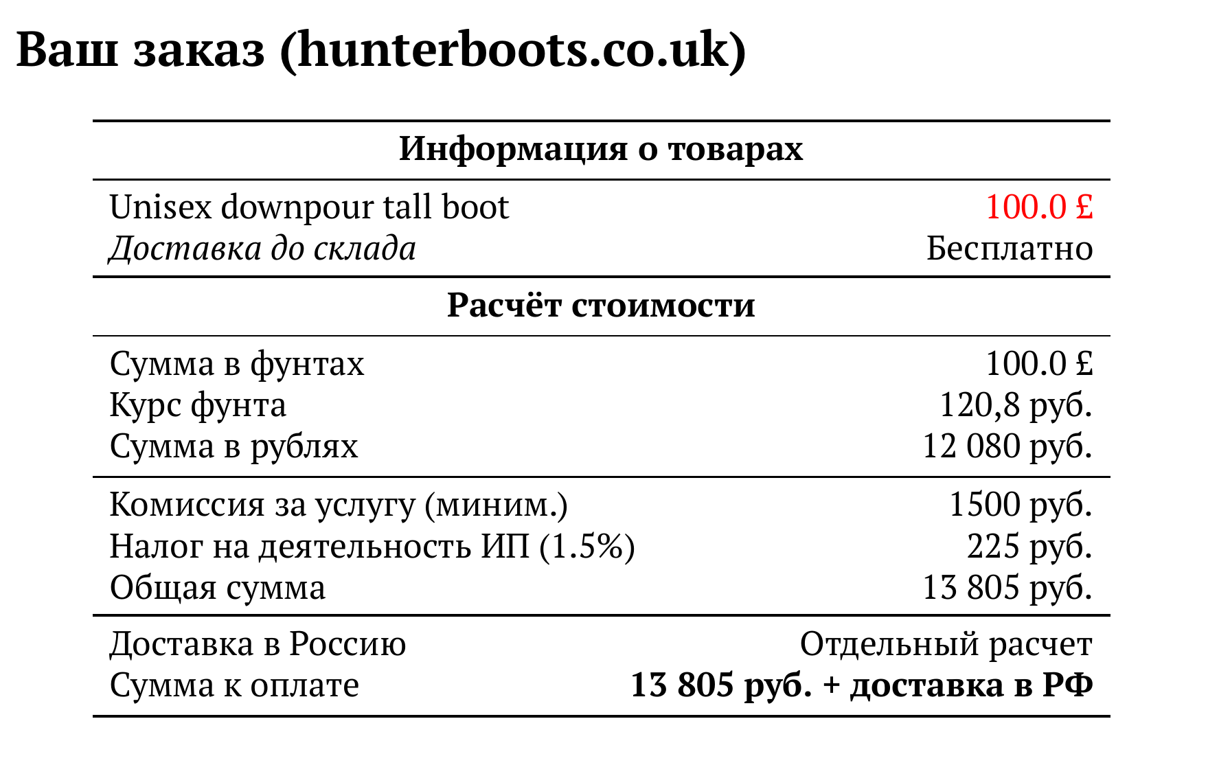 Расчет для hunterboots.co.uk — 13 805 руб.