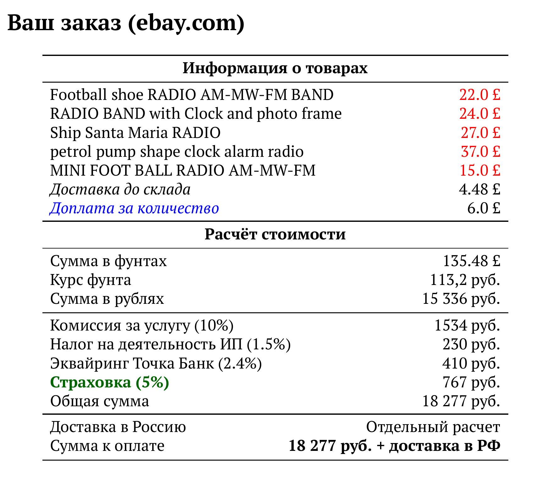 Расчет для ebay.com — 18 277 руб.