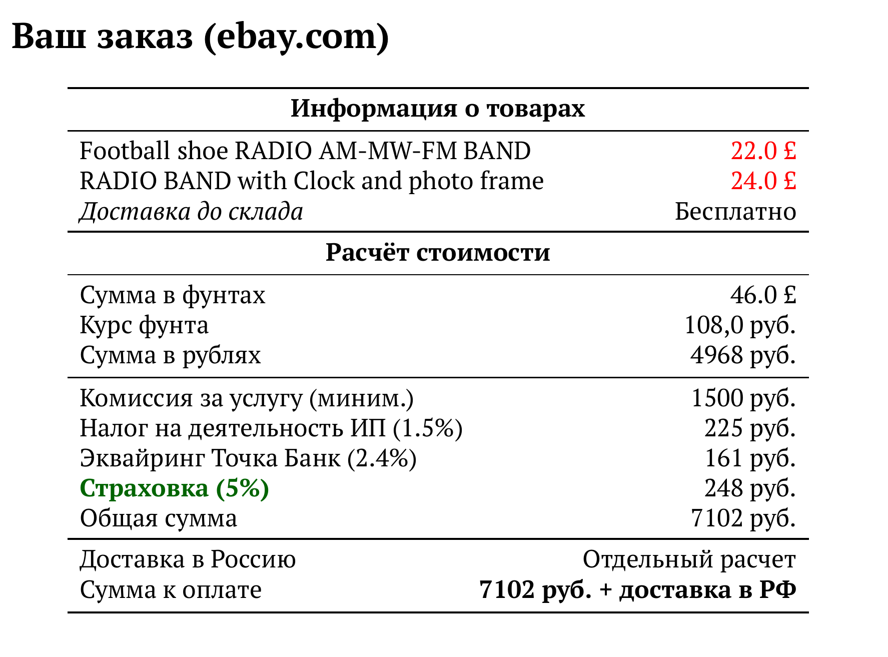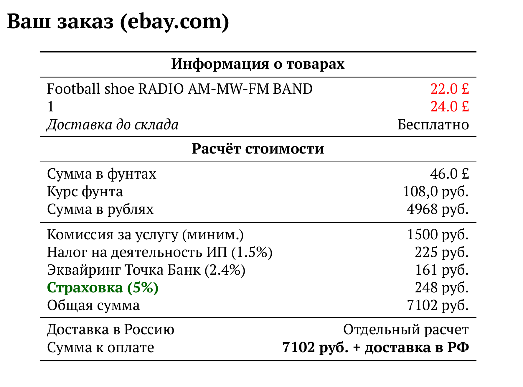 Расчет для ebay.com — 7102 руб.
