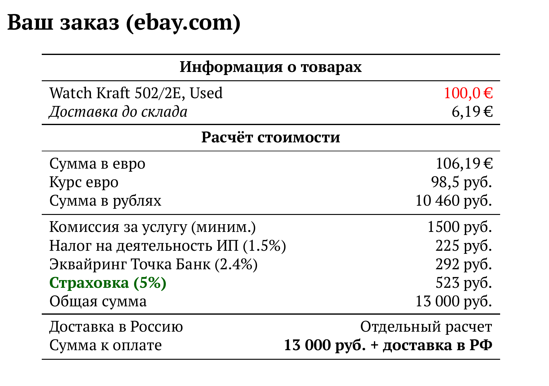 Расчет для ebay.com — 13 000 руб.