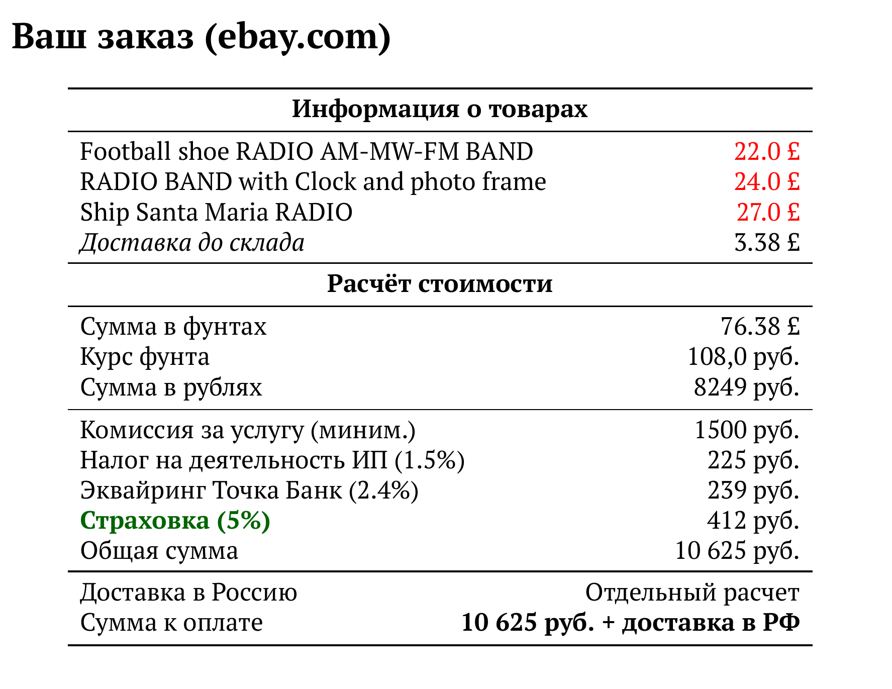 Расчет для ebay.com — 10 625 руб.