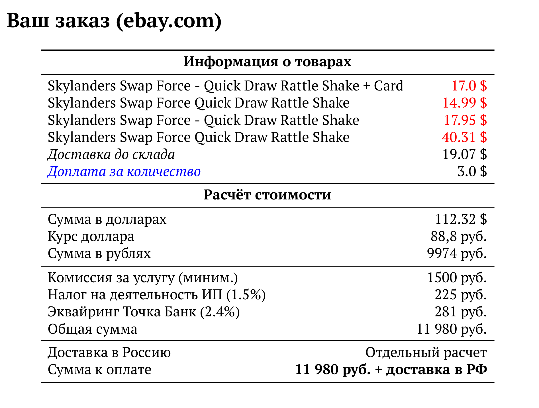 Расчет для ebay.com — 11 980 руб.