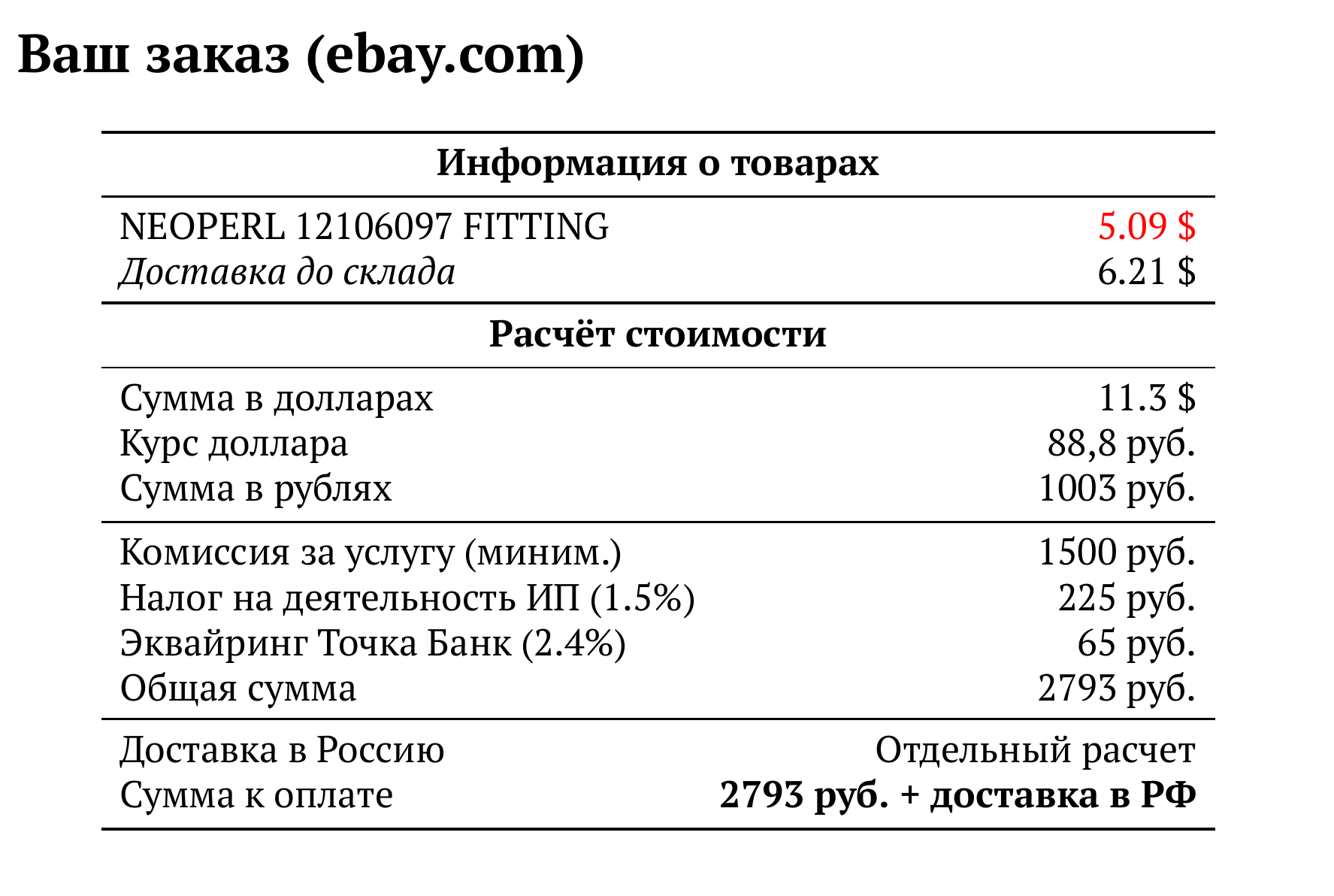 Расчет для ebay.com — 2793 руб.