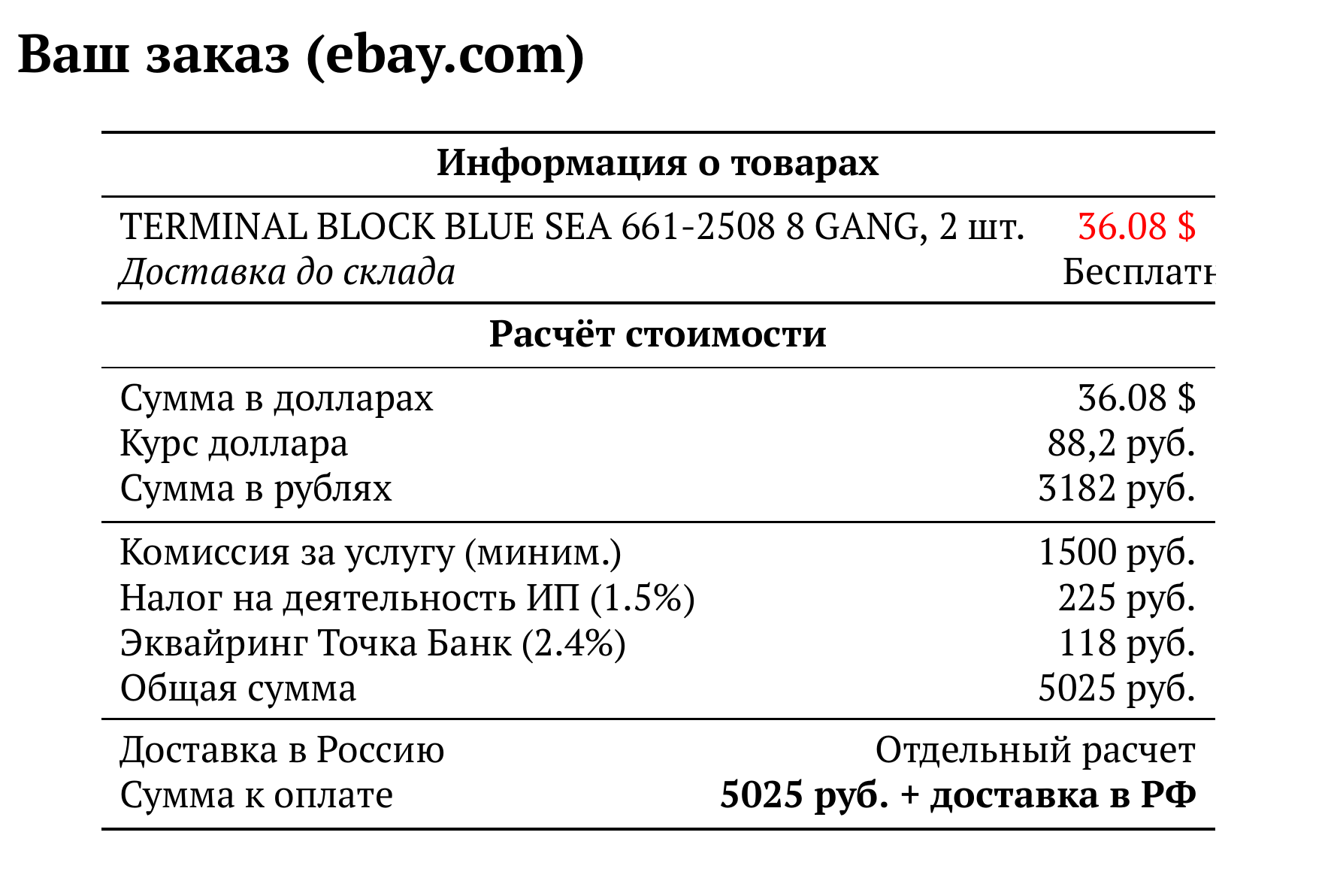 Расчет для ebay.com — 5025 руб.