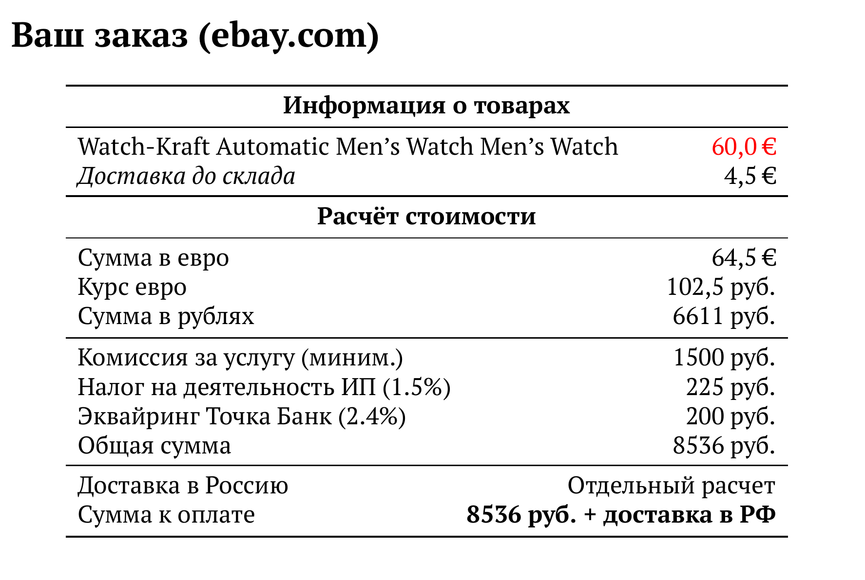 Расчет для ebay.com — 8536 руб.