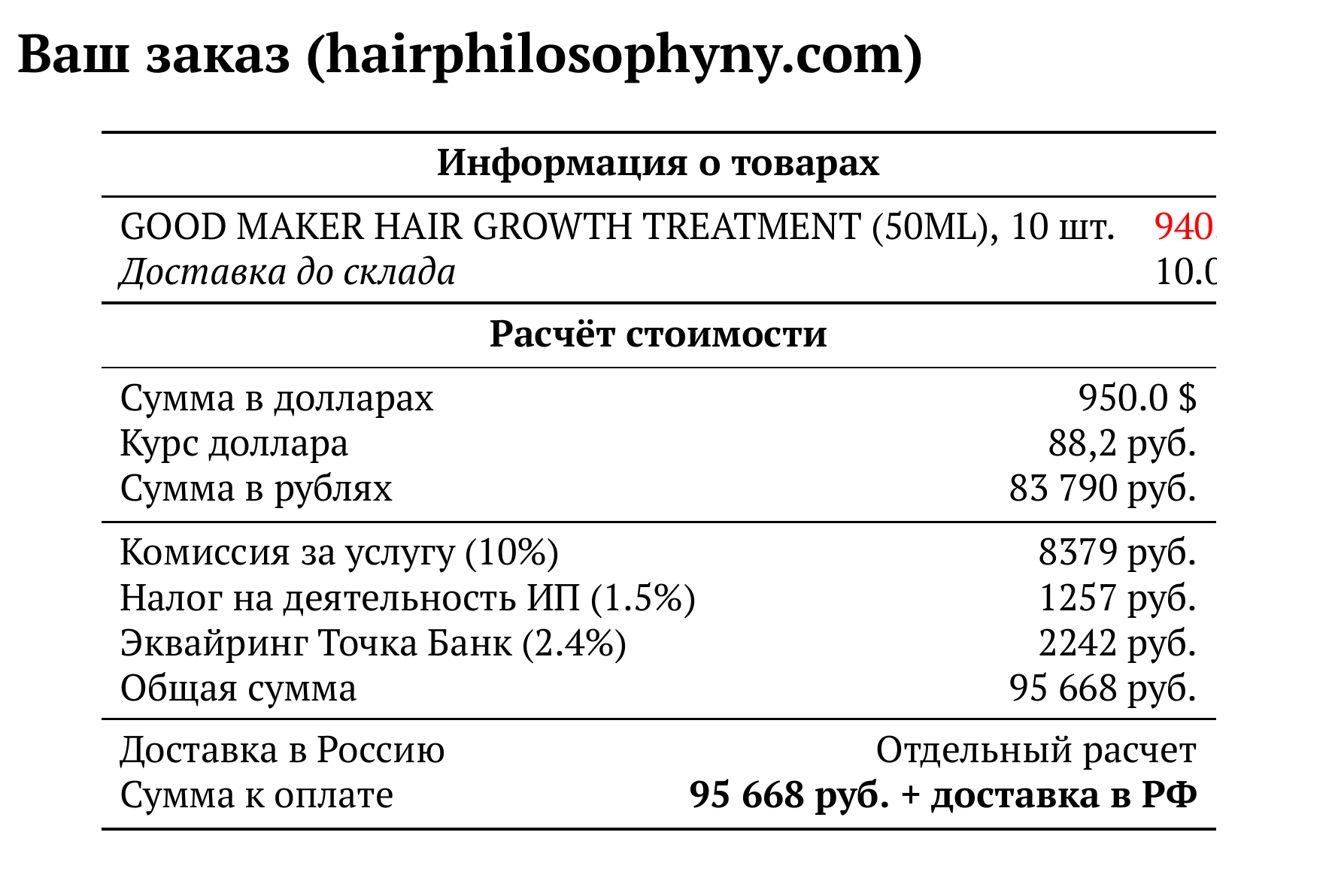 Расчет для hairphilosophyny.com — 95 668 руб.