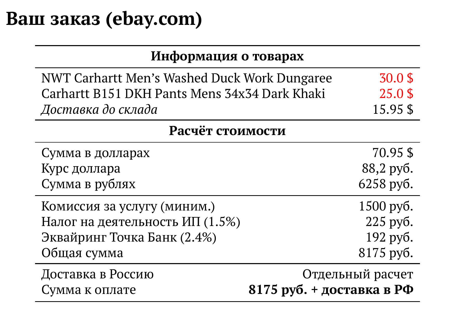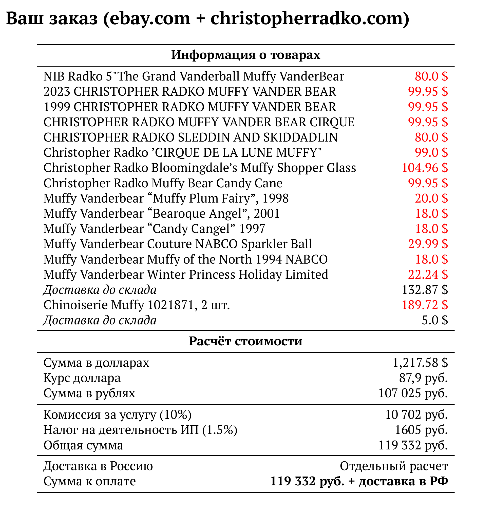 Расчет для ebay.com + christopherradko.com — 119 332 руб.
