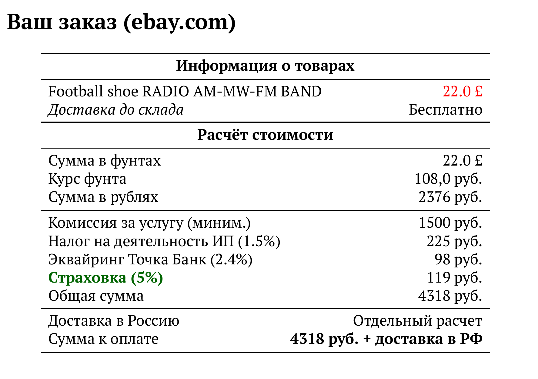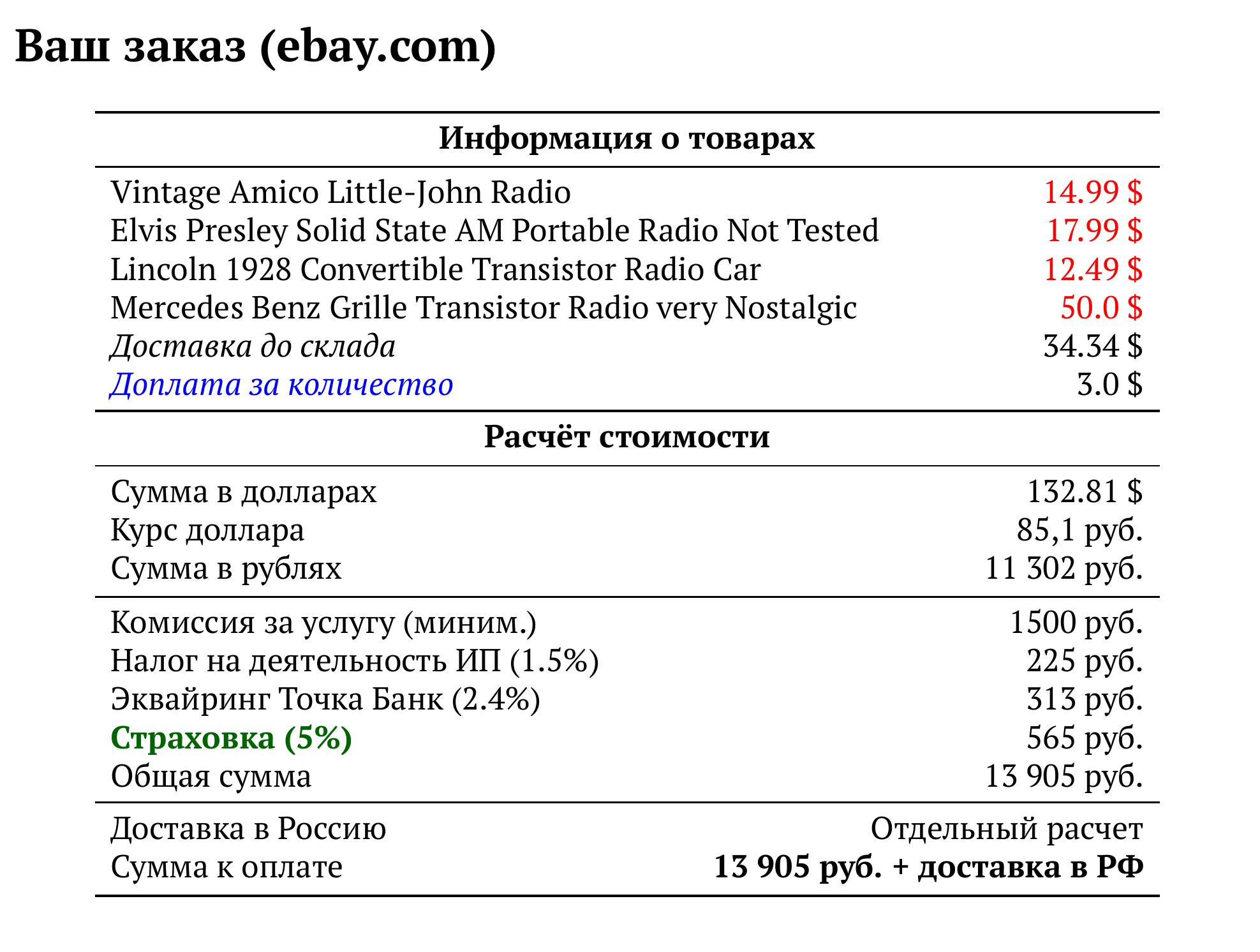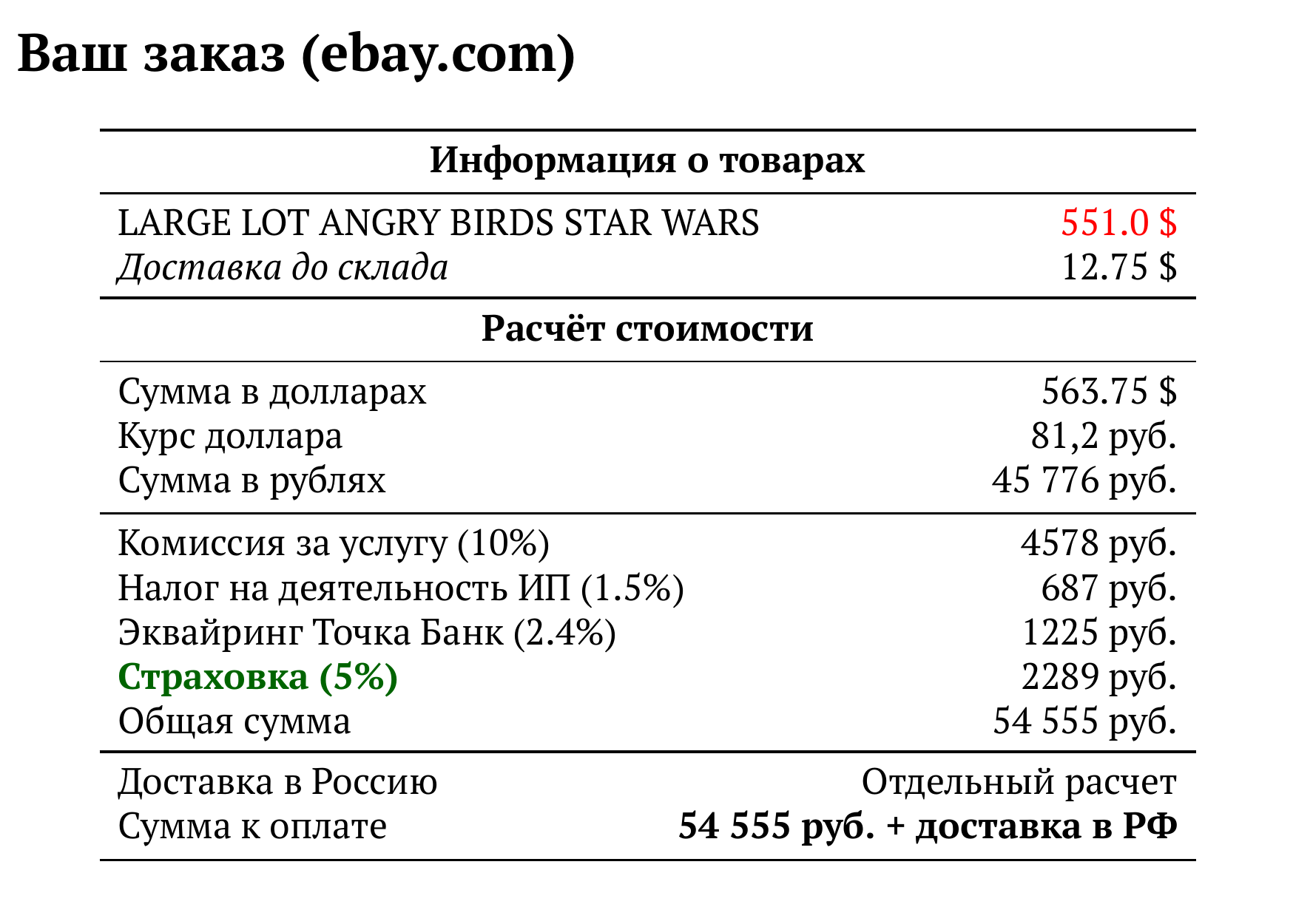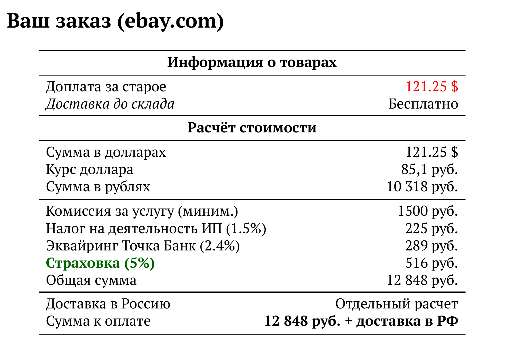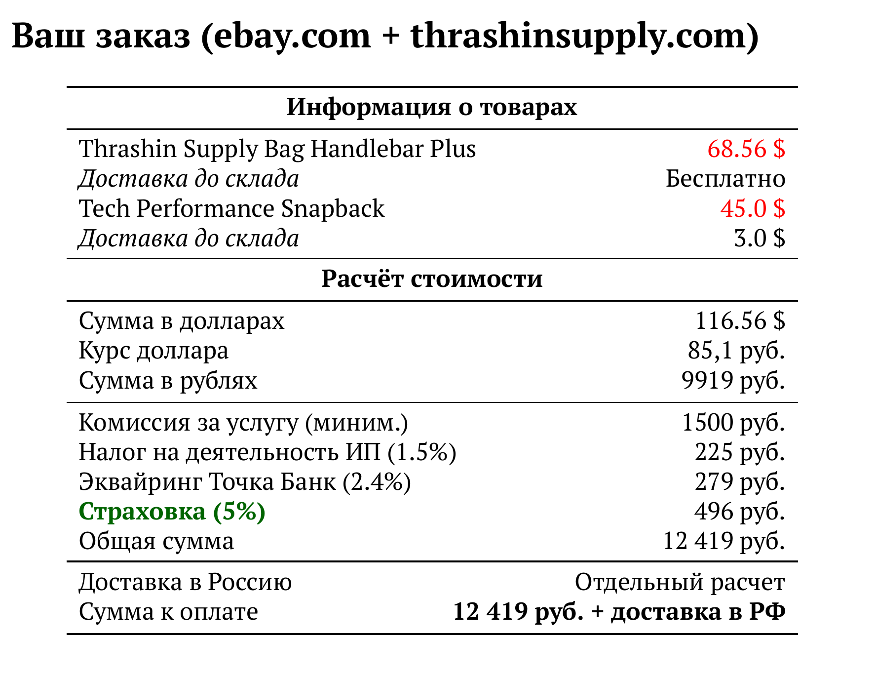 Расчет для ebay.com + thrashinsupply.com — 12 419 руб.