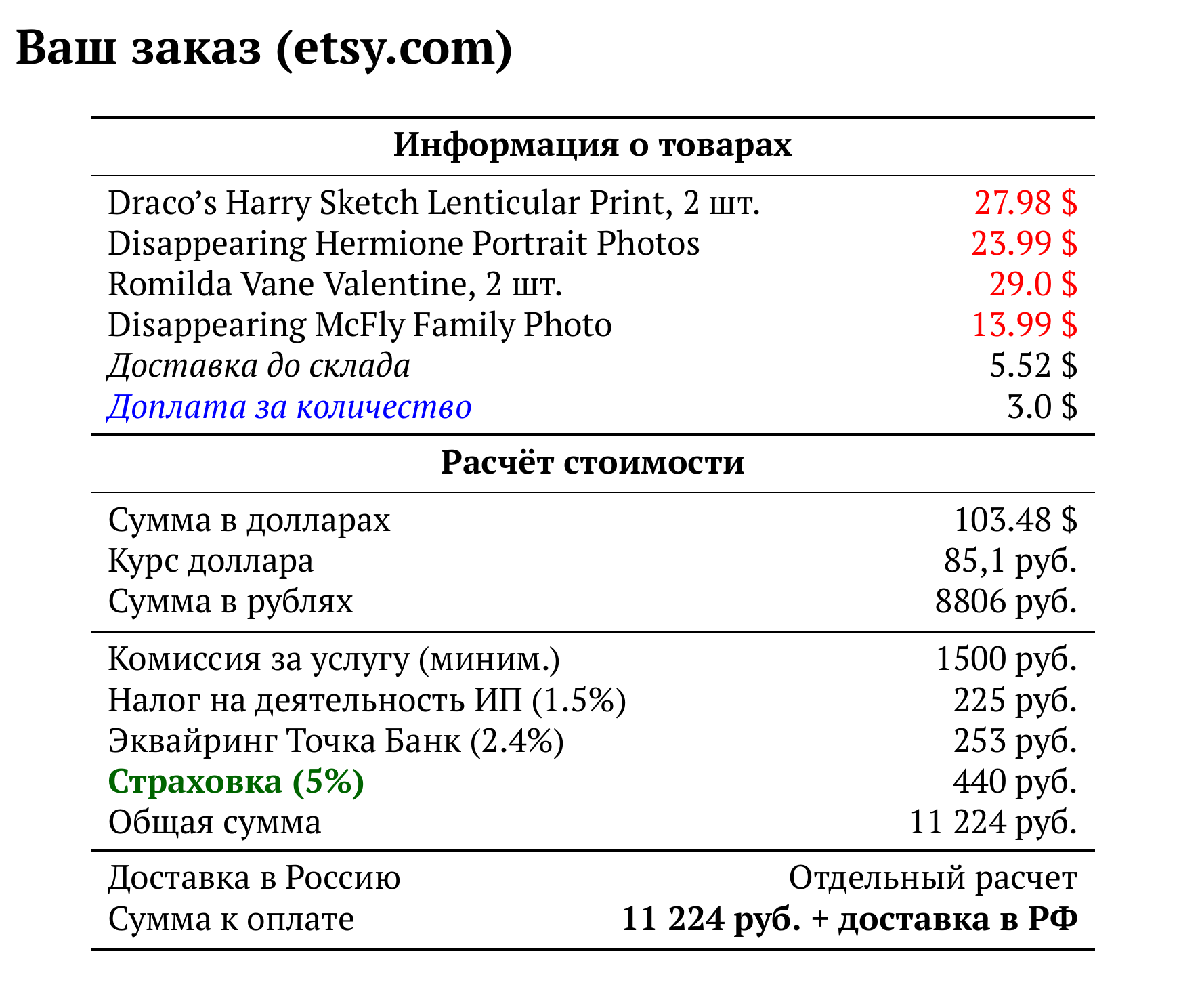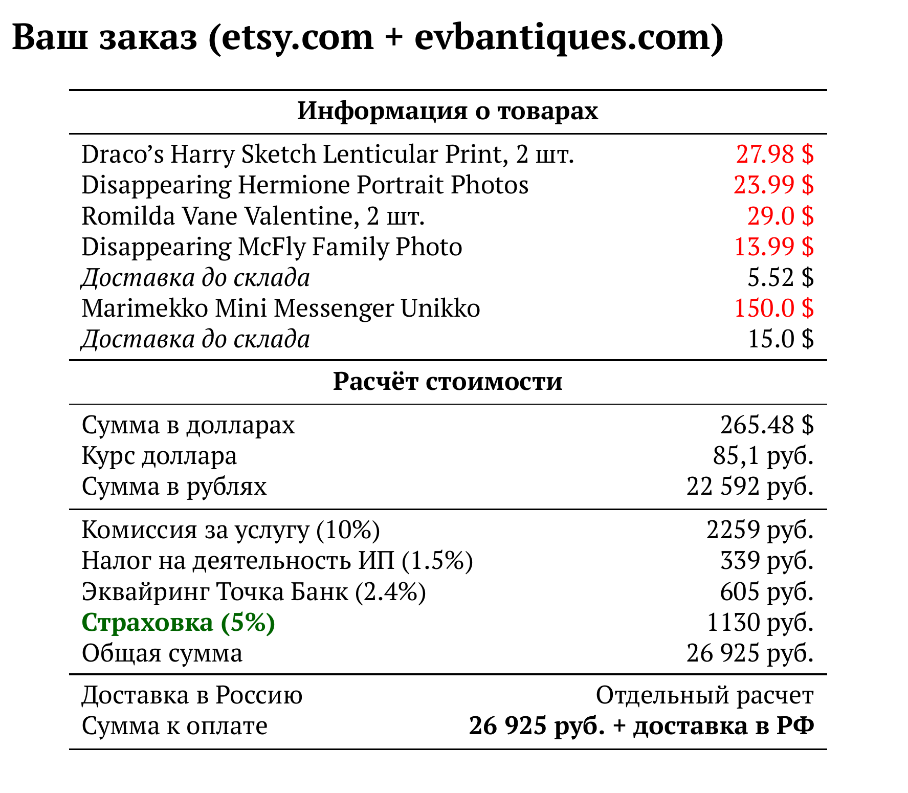Расчет для etsy.com + evbantiques.com — 26 925 руб.
