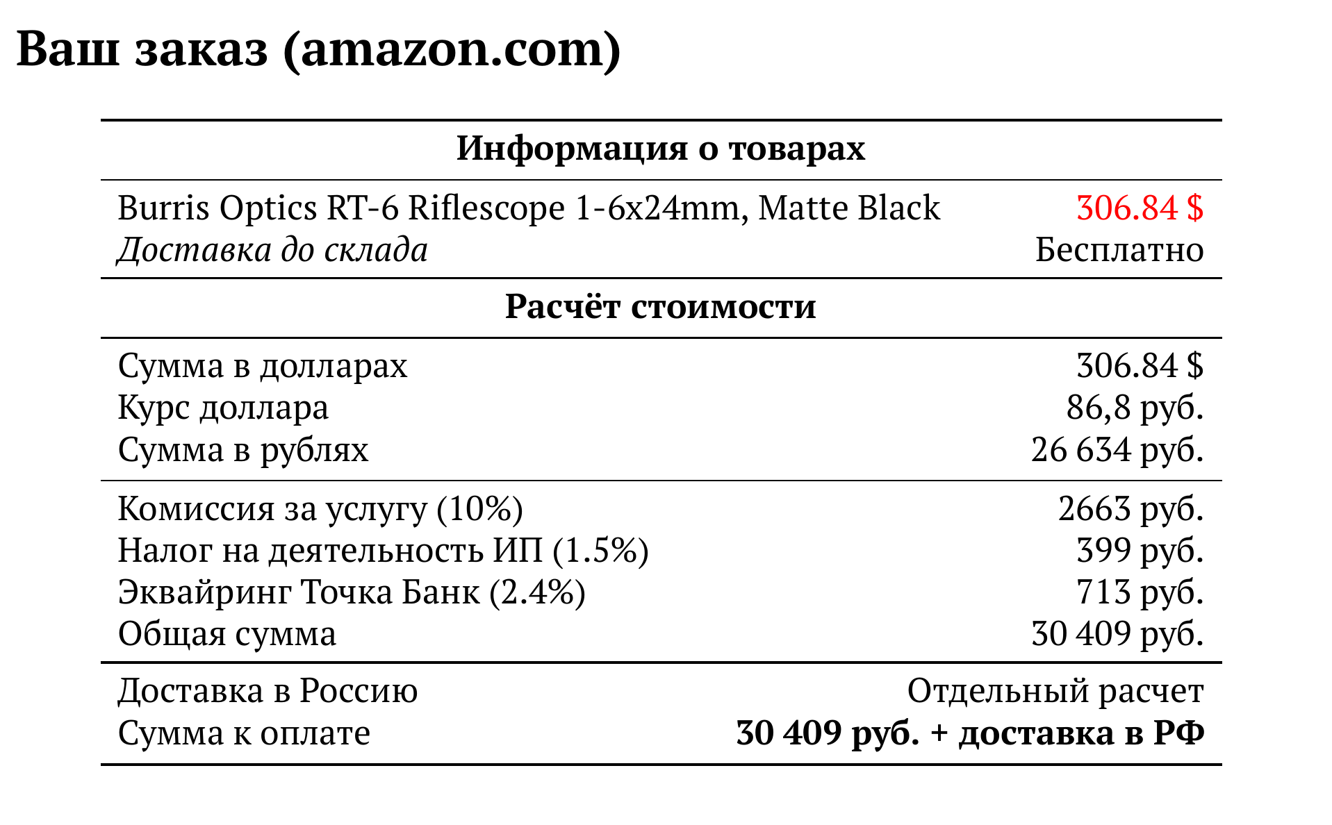 Расчет для amazon.com — 30 409 руб.