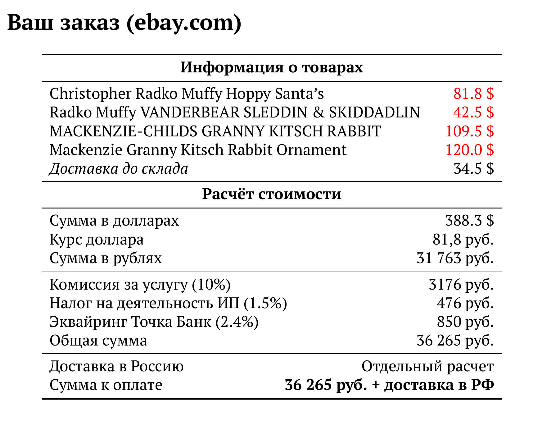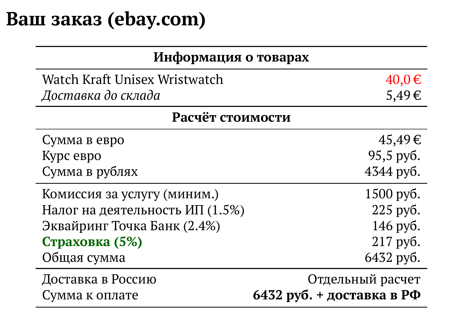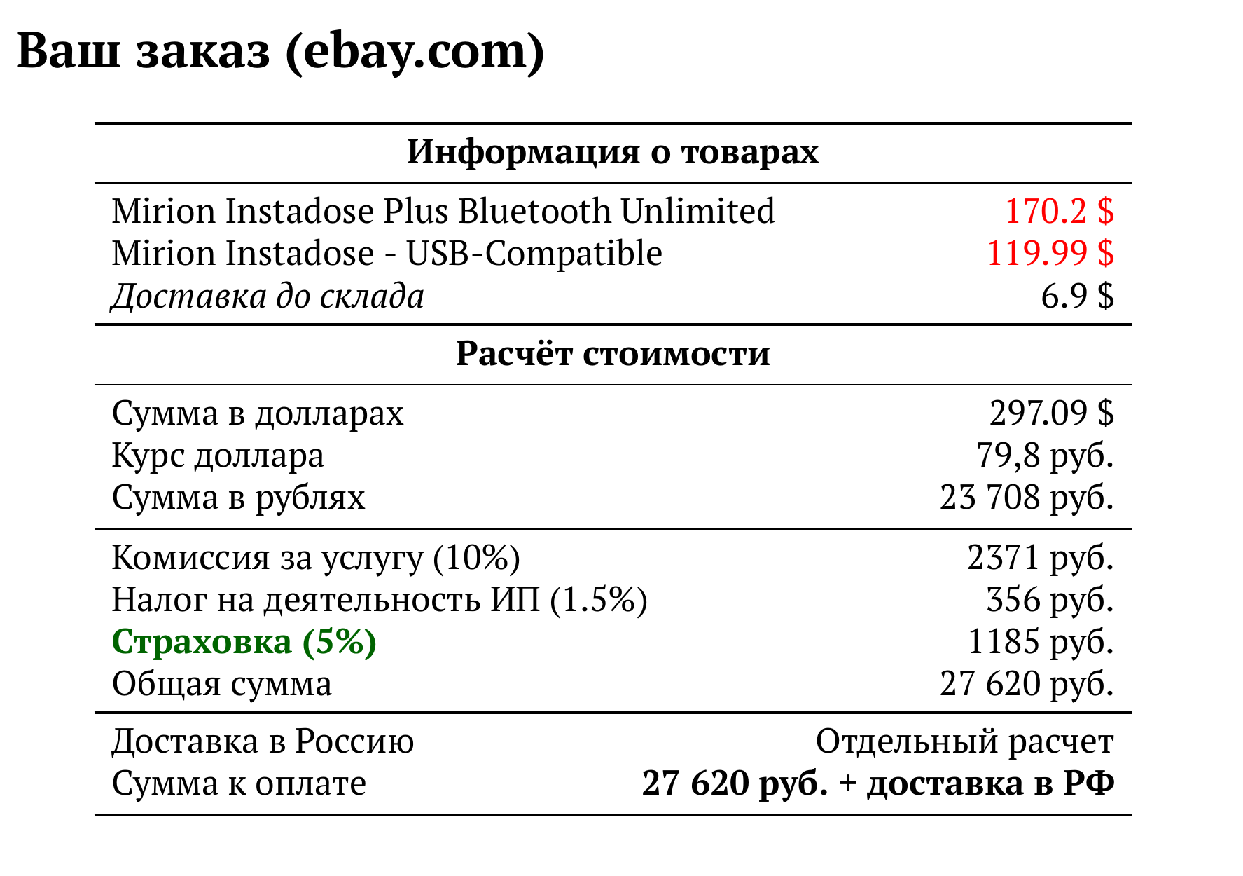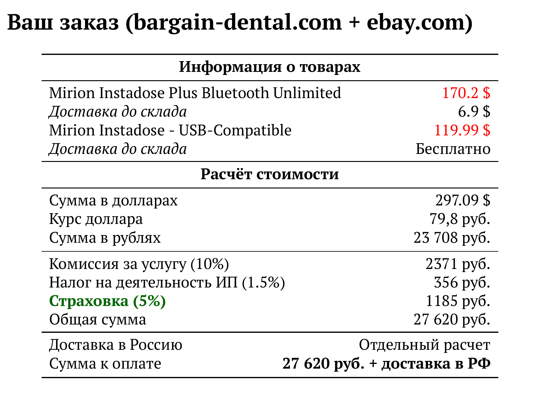 Расчет для bargain-dental.com + ebay.com — 27 620 руб.