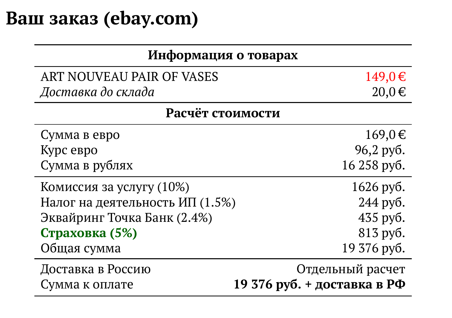 Расчет для ebay.com — 19 376 руб.