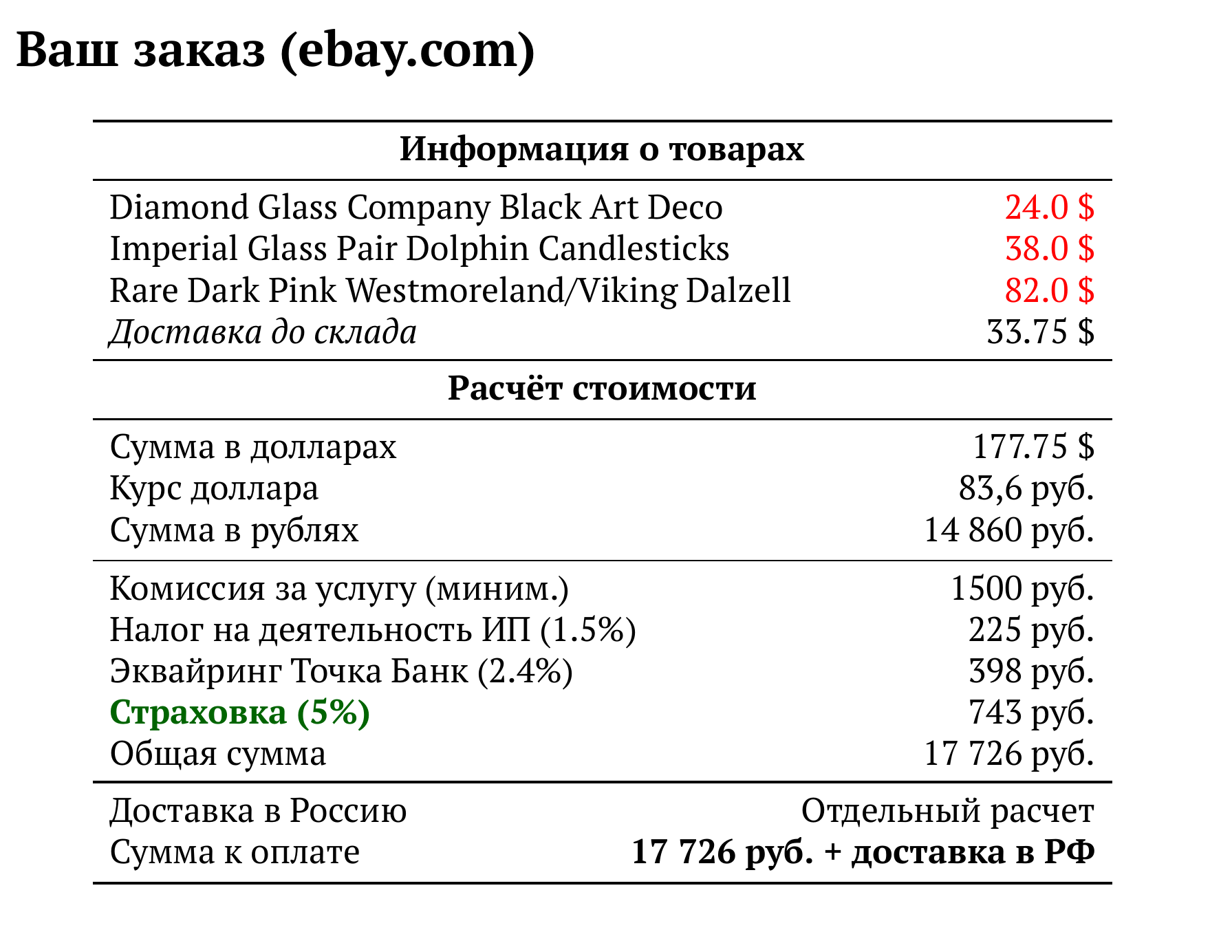 Расчет для ebay.com — 17 726 руб.