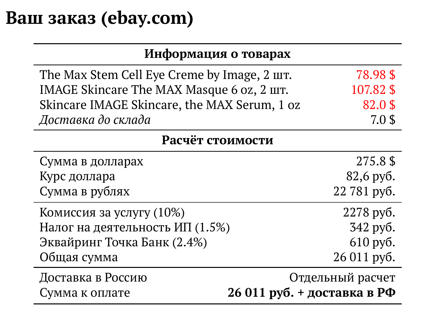 Расчет для ebay.com — 26 011 руб.