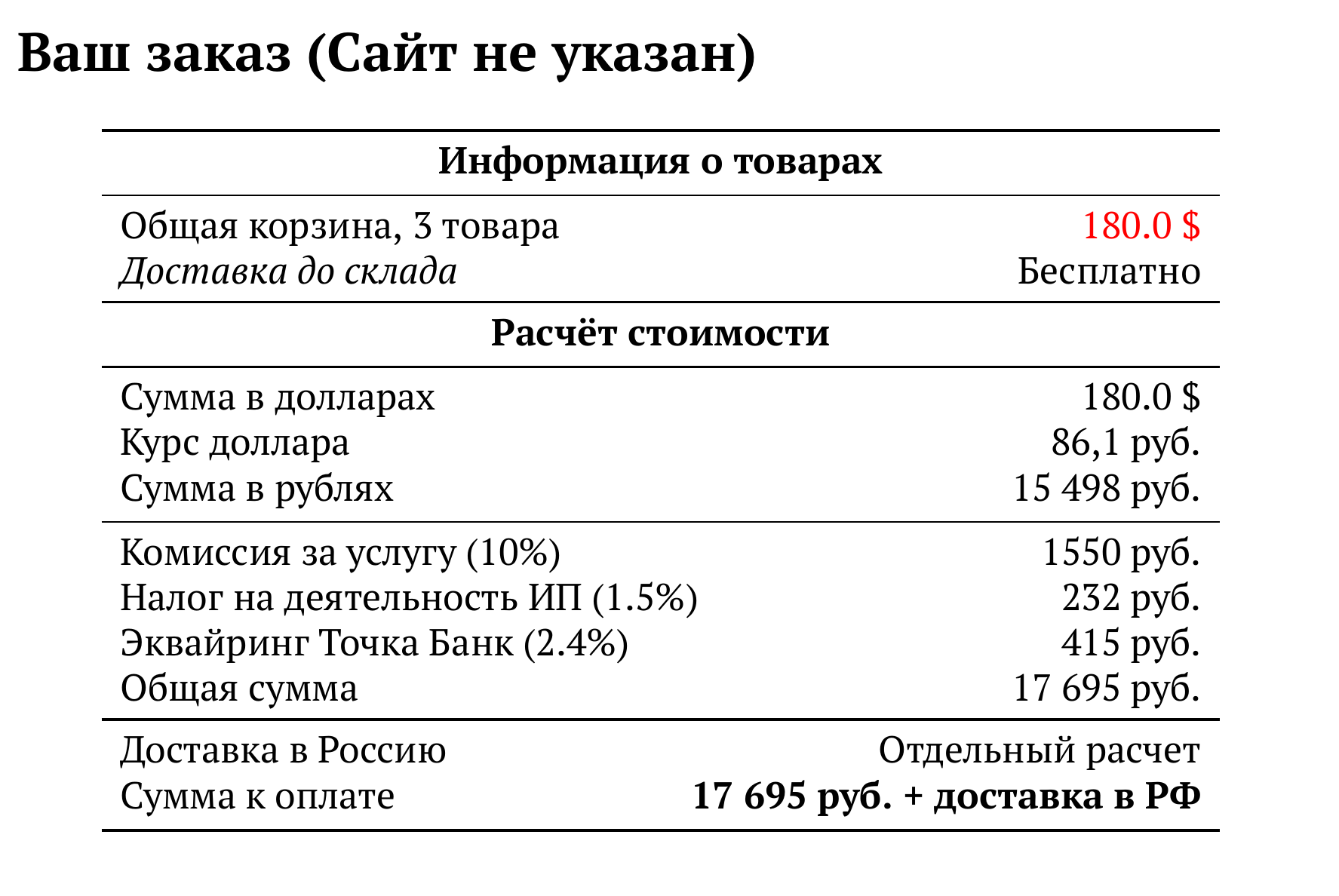 Расчет для сайт не указан — 17 695 руб.